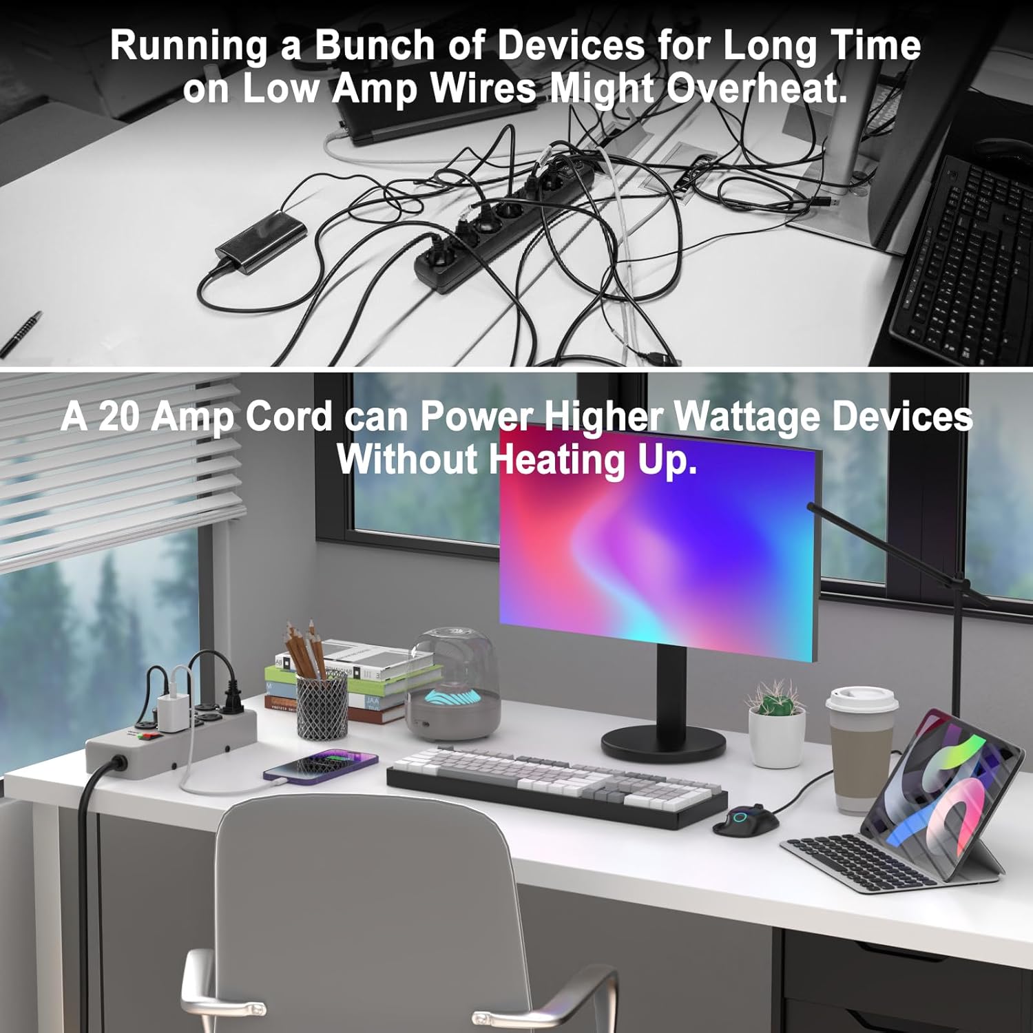 - Safety Features: With a built-in 4800J surge protector and a 20A circuit breaker, this power strip offers comprehensive protection against short circuits, overcurrent, overheating, and overvoltage. If the current surpasses 20A, the circuit breaker automatically shuts off power to prevent damage, and itβs easily reset by turning off the power and pressing the reset switch.