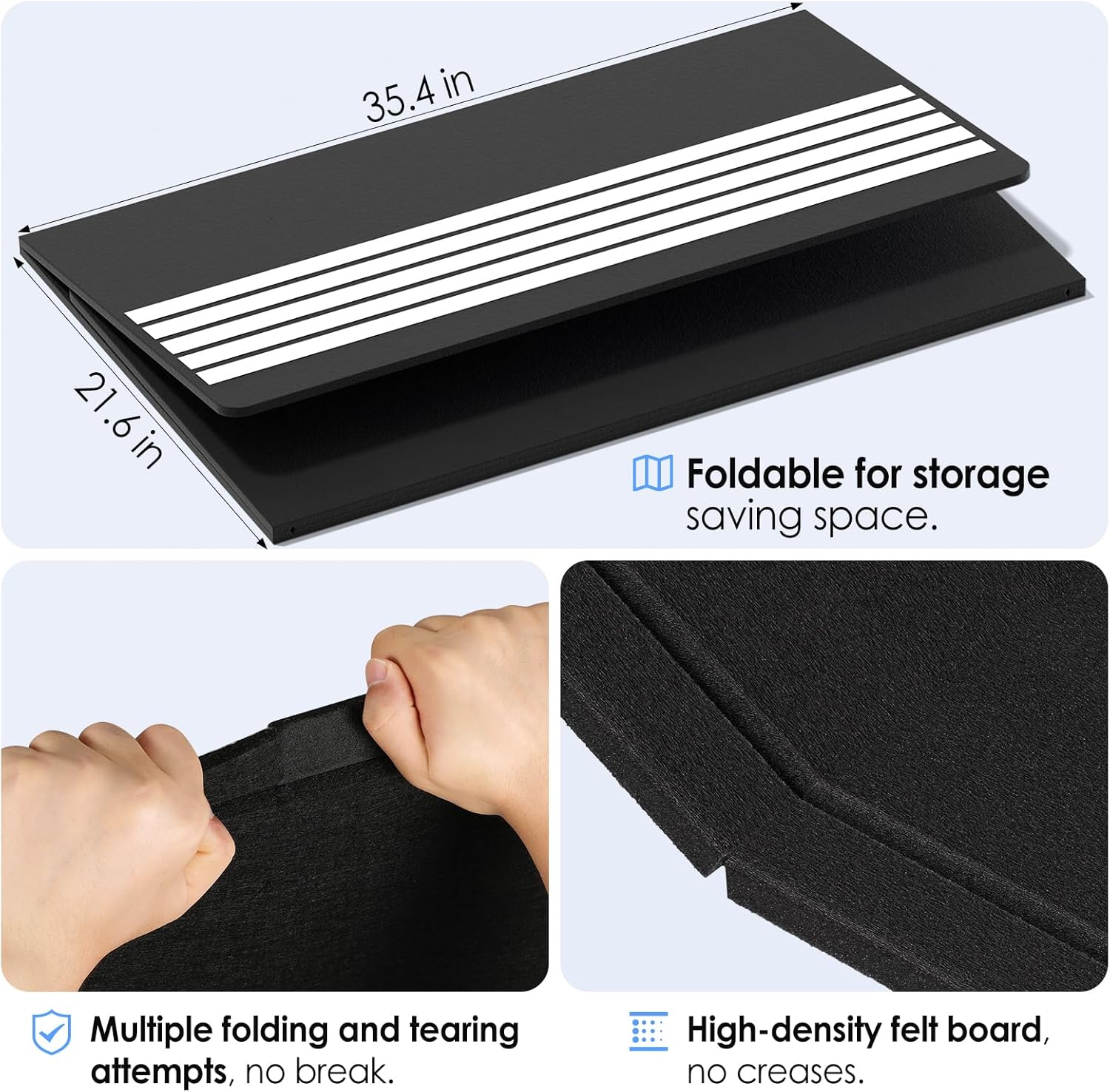 - LARGE FELT BULLETIN BOARD: The panel size is 60" x 36", 0.35" thick high-density felt panel, which can accommodate thumbtacks of multiple sizes, and is more durable than corkboard and will not break or fall apart. (The thumbtacks are inserted at a 45-degree downward angle to increase load-bearing and stability.)