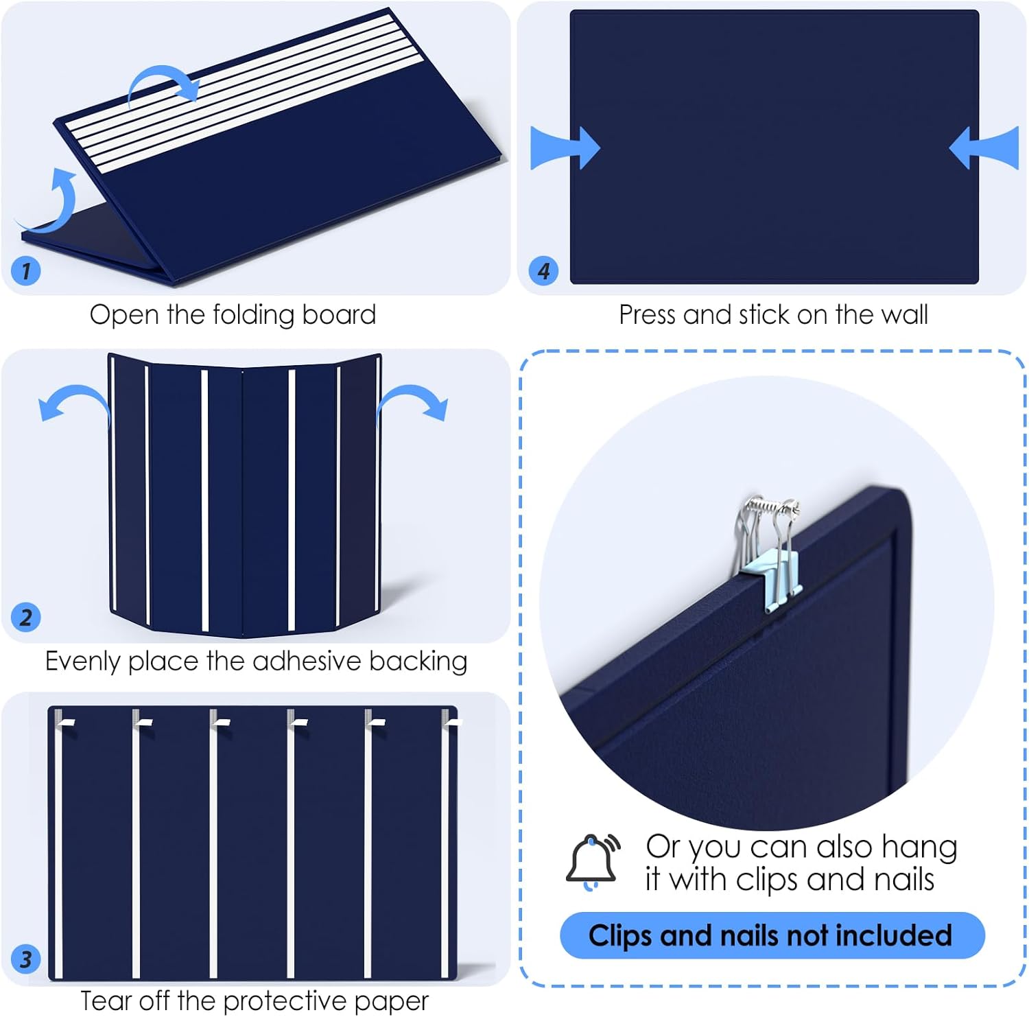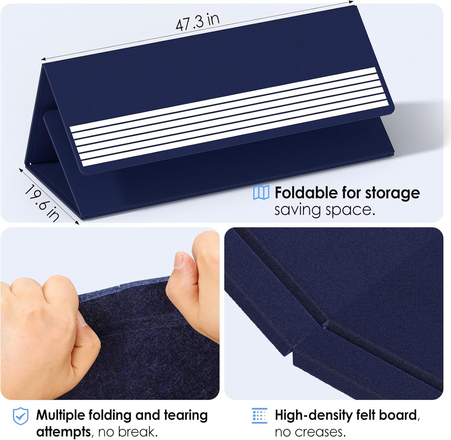- FOLDING DESIGN: It adopts a 3-fold setting, which is portable and convenient to store without taking up space. The HOOK and LOOP FASTENER BACKING ADHESIVE adhesive design can be removed and displayed on the wall when needed. You can rest assured that the high-density board will not break after multiple tearing tests and no creases after unfolding.