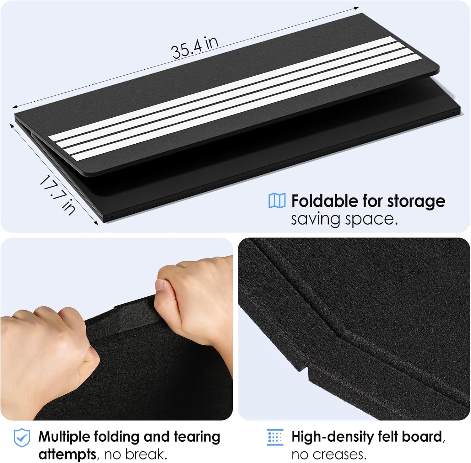- FOLDING DESIGN: It adopts a 3-fold setting, which is portable and convenient to store without taking up space. The HOOK and LOOP FASTENER BACKING ADHESIVE adhesive design can be removed and displayed on the wall when needed. You can rest assured that the high-density board will not break after multiple tearing tests and no creases after unfolding.