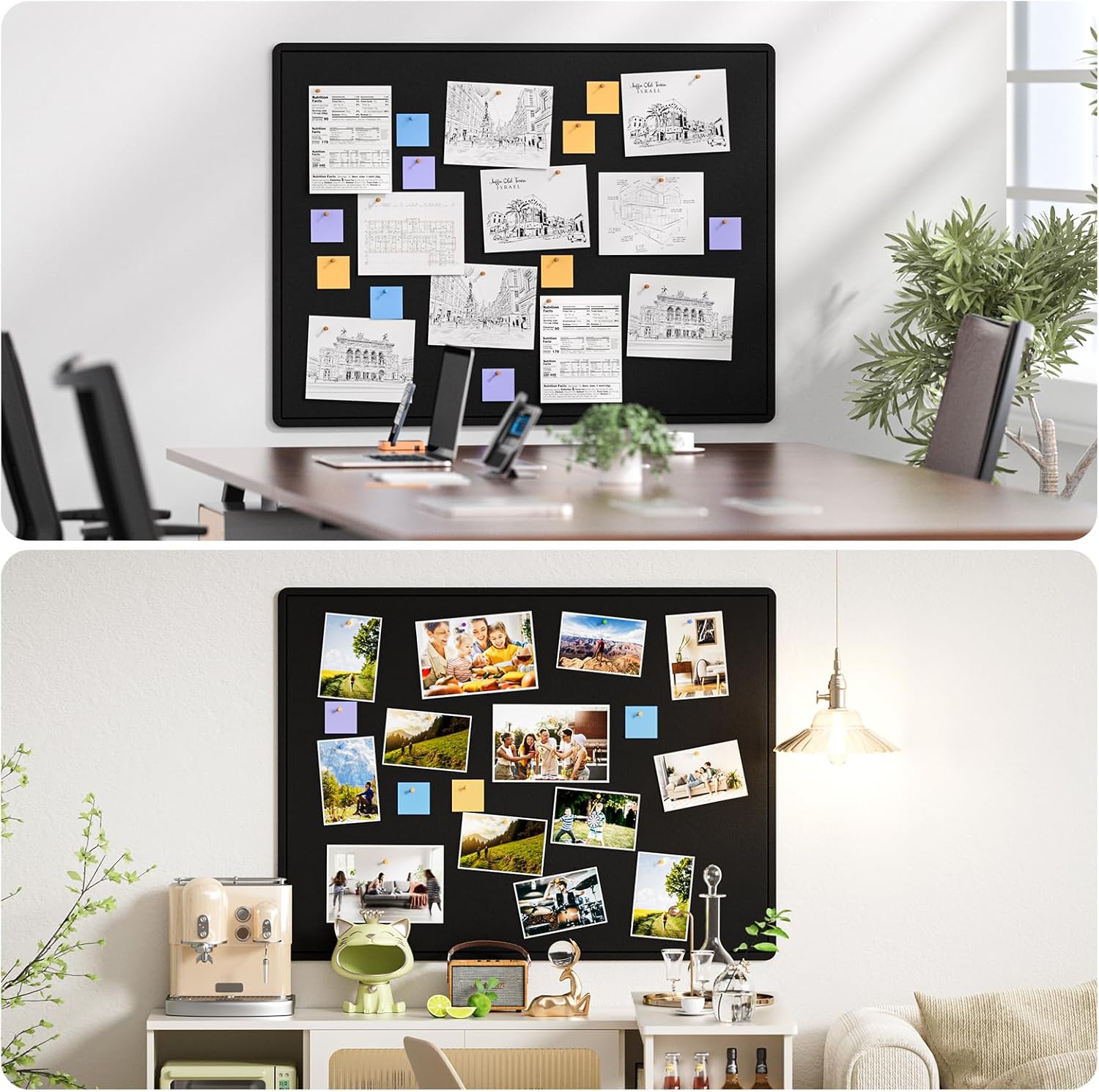 - WIDE APPLICATION: Perfect for displaying pictures, notes, schedules, and reminders, this bulletin board can also serve as large-area decoration and wall protection. It suits various scenes like office backgrounds, homes, kitchens, jewelry storage, and tool storage. Customize it to your needs, whether as planning boards, message boards, notice boards, DIY vision boards, picture boards, or mood boards. The different color options seamlessly blend practicality with aesthetics, enhancing any space.