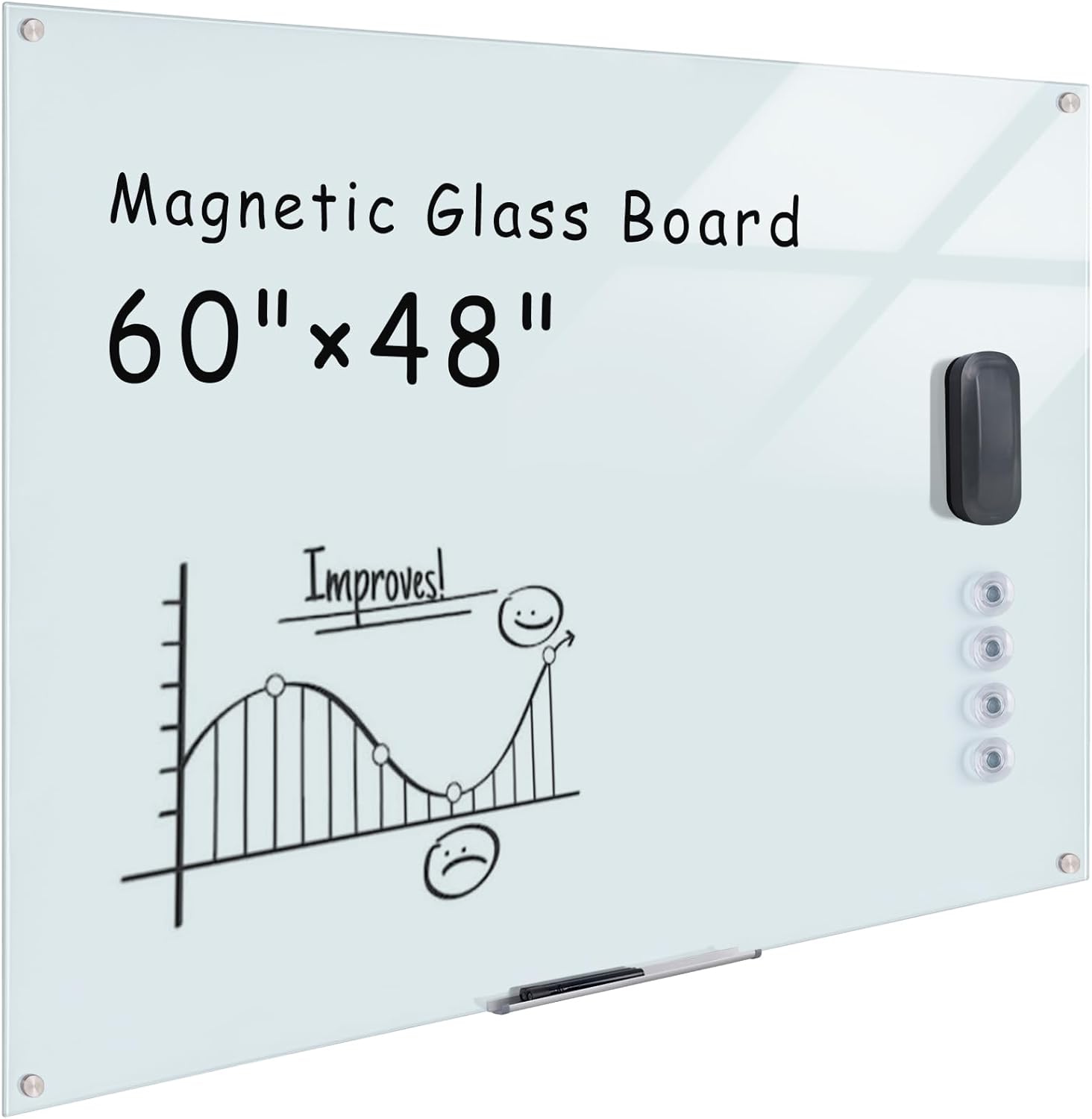 - ✔ 【Strong Magnetic Capabilities】Featuring a steel-backed surface, our board includes 4 super-strong magnets designed specifically for glass boards. Easily post documents, notes, or reminders—perfect for meetings, brainstorming, or home organization. (Standard magnets may not work due to glass thickness.)