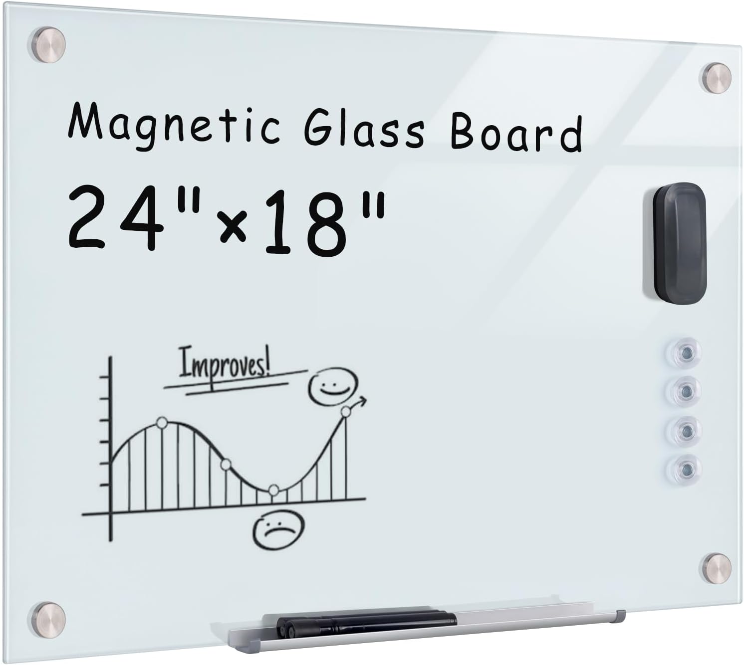- ✔ 【Strong Magnetic Capabilities】Featuring a steel-backed surface, our board includes 4 super-strong magnets designed specifically for glass boards. Easily post documents, notes, or reminders—perfect for meetings, brainstorming, or home organization. (Standard magnets may not work due to glass thickness.)