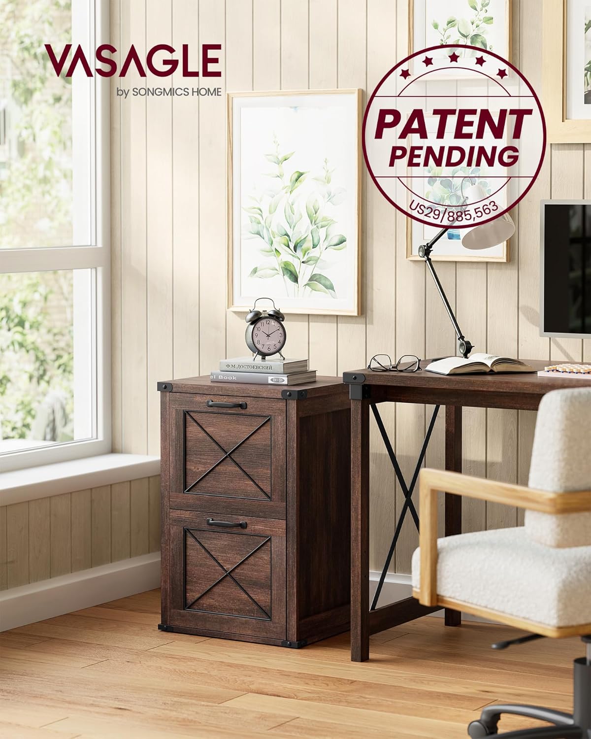 - [Charming Farmhouse Style] Bring the farmhouse charm to your home with this file cabinet. Its unique maroon brown color and barn doors are sure to liven up any office, study, or even bedroom as a nightstand!