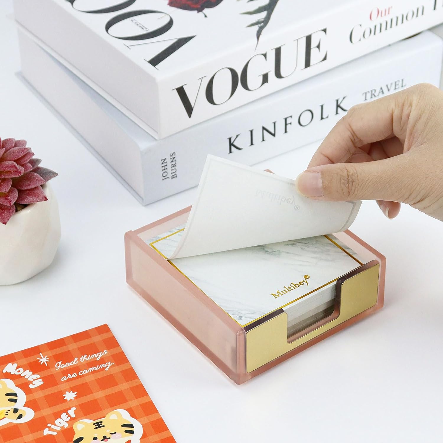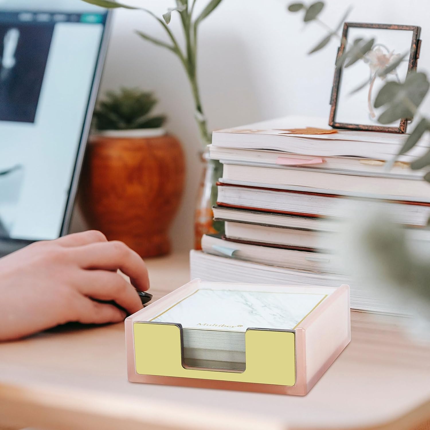 - š Material: Made with the best quality of ABS plastic, the cute sticky note holder has excellent longevity and robustness. Stable on desk, good partner for organizing note pads on top of your desk.