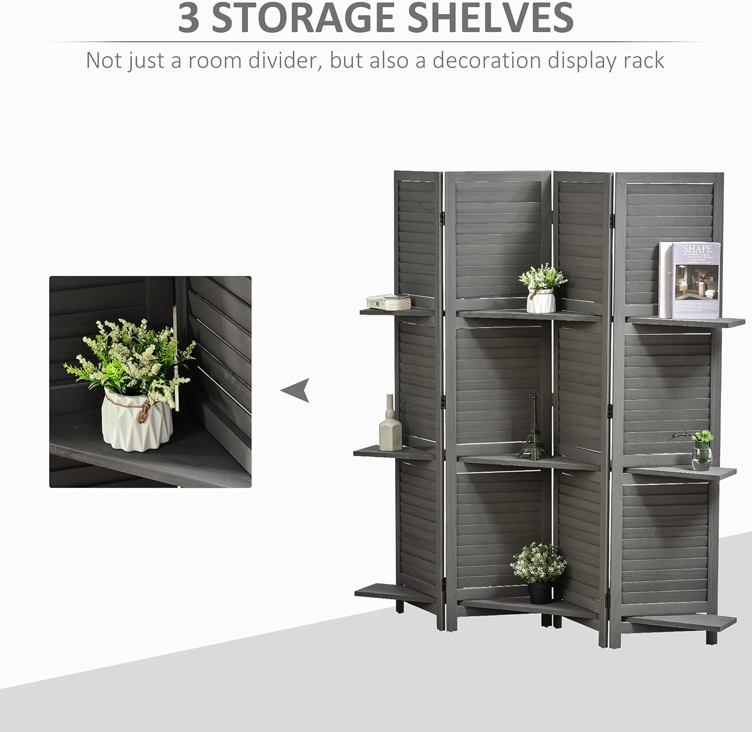 NicBex Room Divider 4 Panel Room Dividers with Storage Shelves Partition Room Dividers and Folding Privacy Screens 5.6 FT Wall Divider for Home, Office, Room Separation,63.75"W x 0.75"D x 67"H, Gray