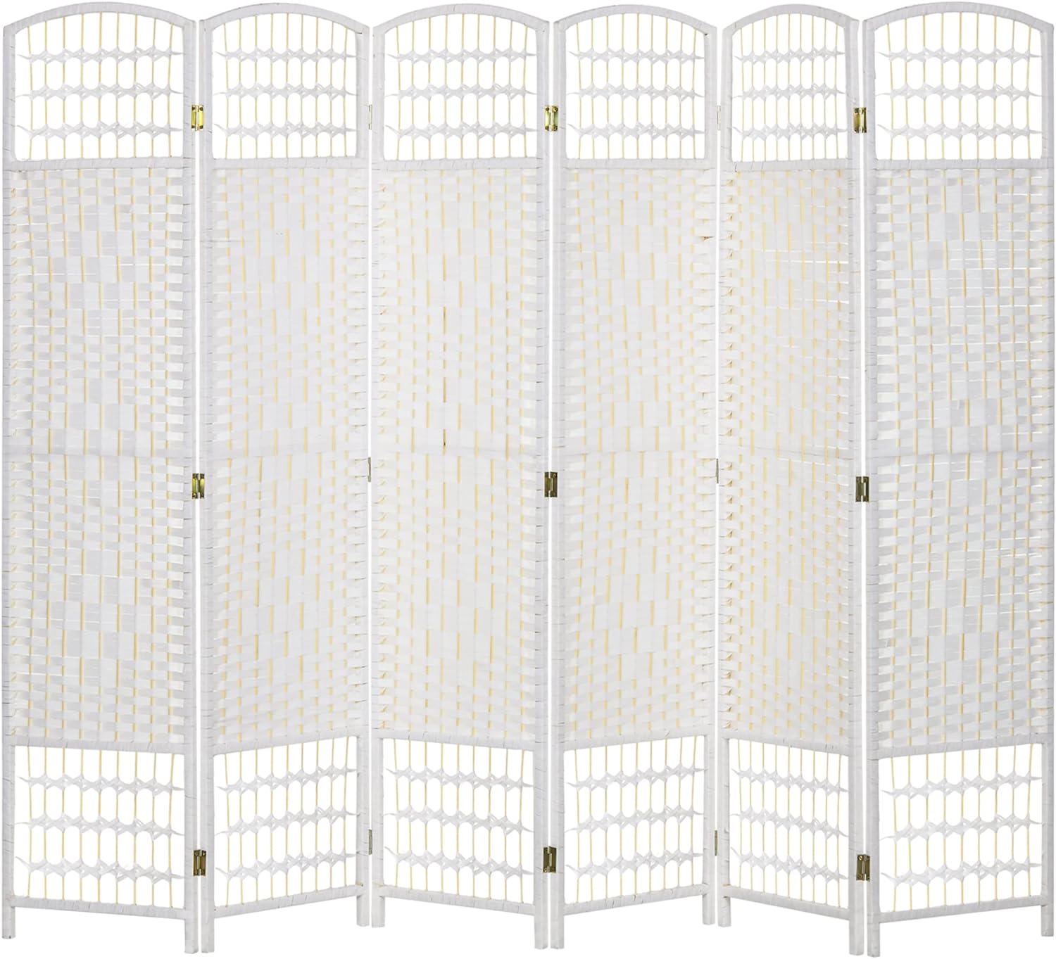 NicBex Room Divider 6 Panel Room Dividers with Woven Paper Design Partition Room Dividers and Folding Privacy Screens 5.6 FT Wall Divider for Office, Room Separation,94.5" W x 0.5" D x 67" H, White