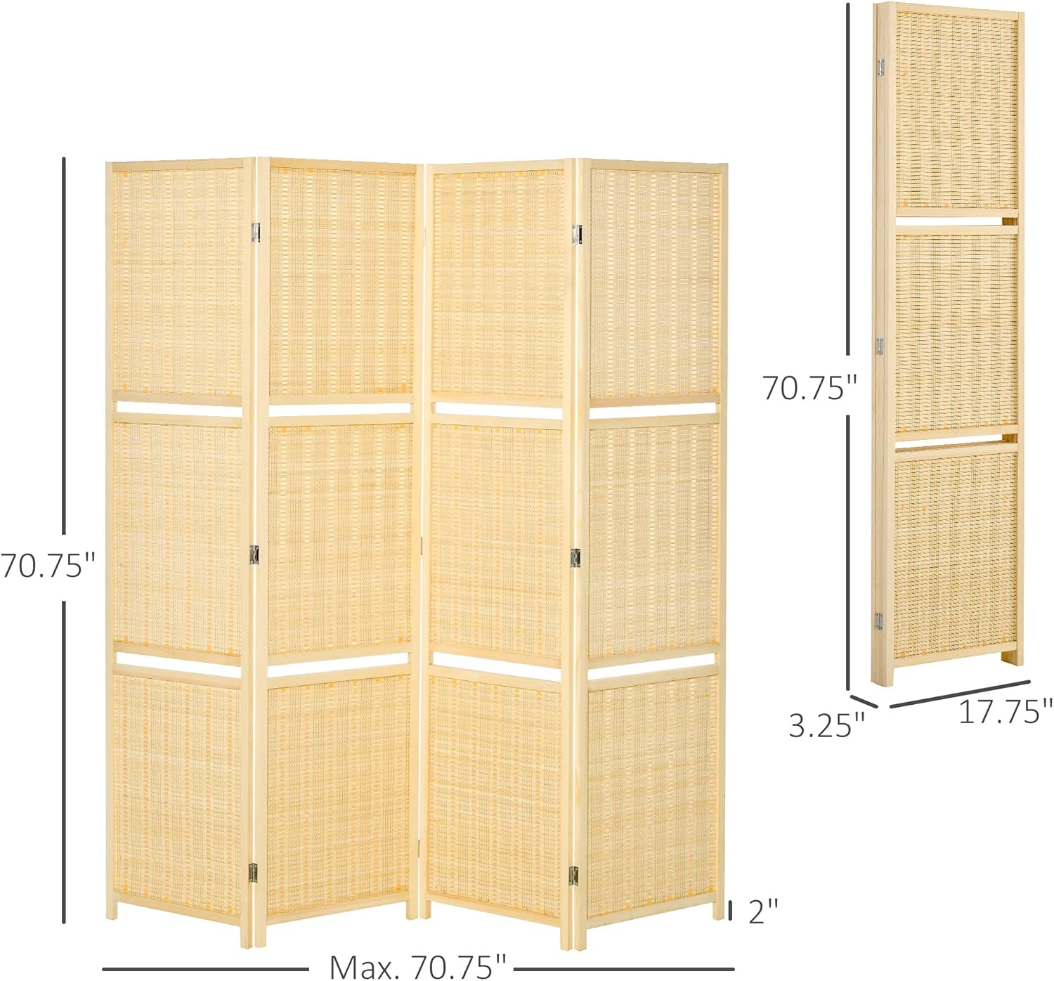 NicBex Room Divider 4 Panel Room Dividers with Storage Shelves Partition Room Dividers and Folding Privacy Screens 6 FT Wall Divider for Office, Room Separation,70.75" W x 0.75" D x 70.75" H, Natural