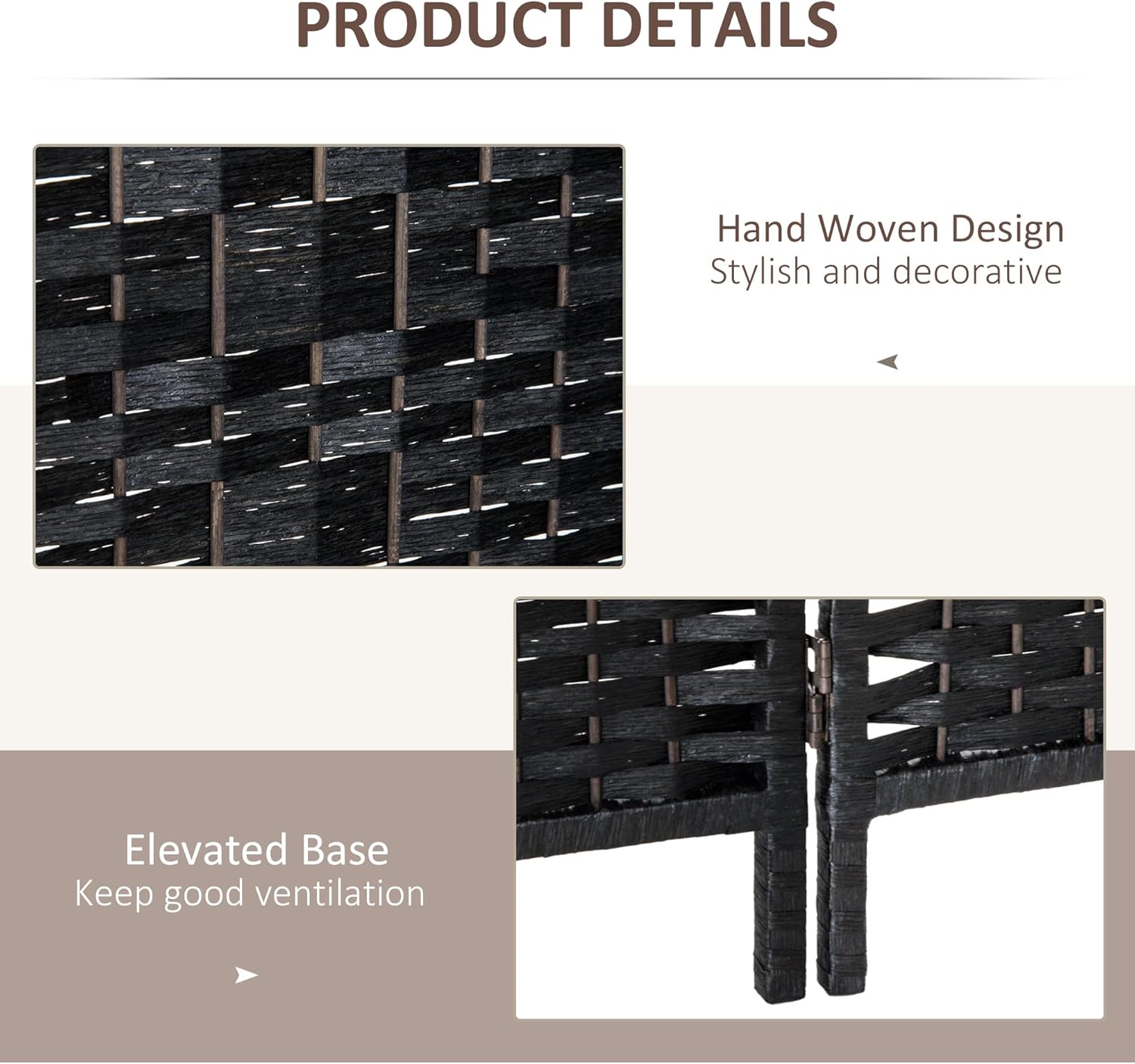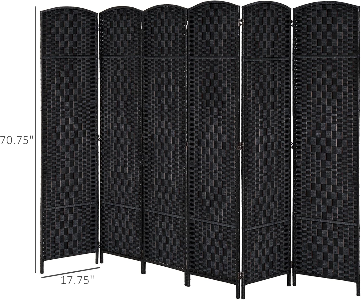 NicBex Room Divider 6 Panel Room Dividers with Wicker Weave Design Partition Room Dividers and Folding Privacy Screens 6 FT Wall Divider for Office, Room Separation,106.25"W x 0.75"D x 70.75"H, Black