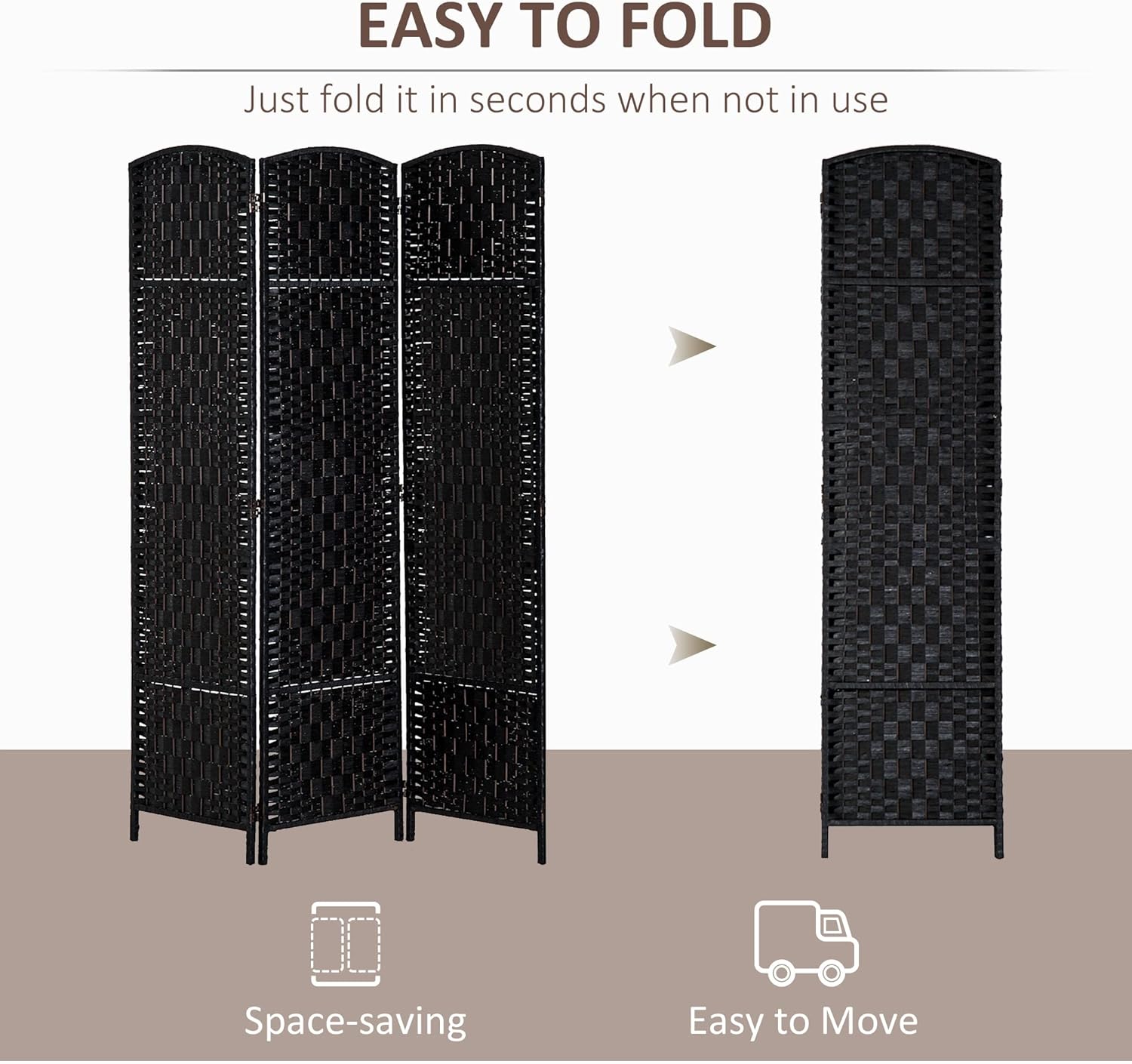 NicBex Room Divider 3 Panel Room Dividers with Wicker Weave Design Partition Room Dividers and Folding Privacy Screens 6 FT Wall Divider for Office, Room Separation,53.25"W x 0.75"D x 70.75"H, Black