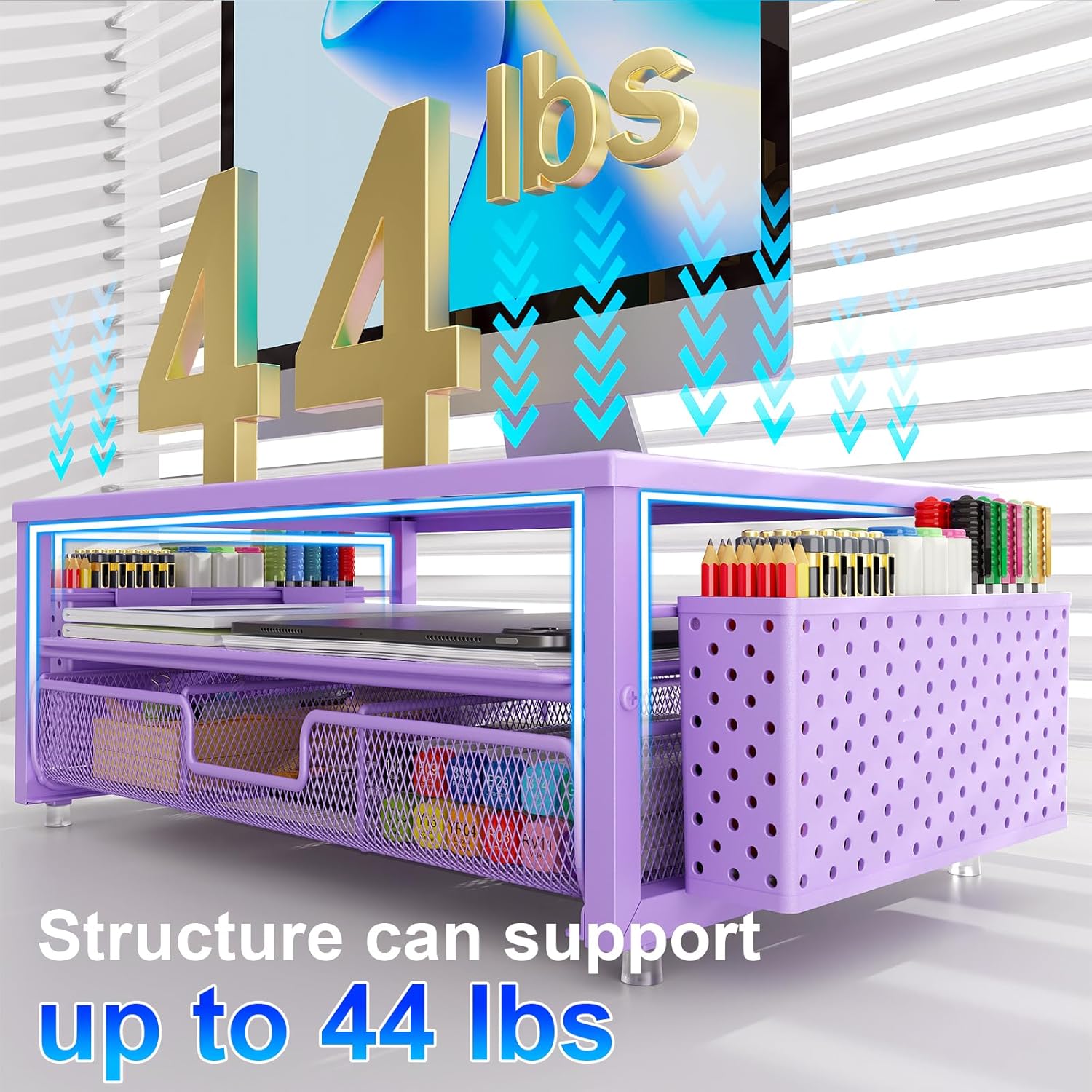 gianotter Desk Organizers and Accessories, Monitor Stand with Drawer and 2 Pen Holder, Purple Desk Accessories, Computer Stand Suitable for Offices and Dormitories (Purple)