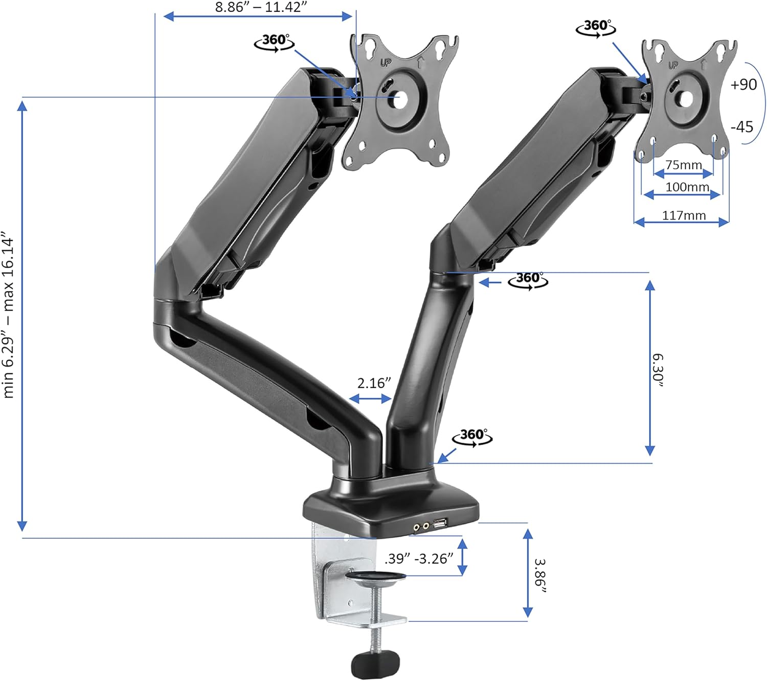 - Minimal assembly -monitor arm attach in minutes and you're ready to go. One Year Warranty and we're always here to help. Licensed under U.S. Patent Nos. 9,113,703, 9,277,809, 9,554,644, 9,924,793 and other pending/issued U.S. and foreign patents