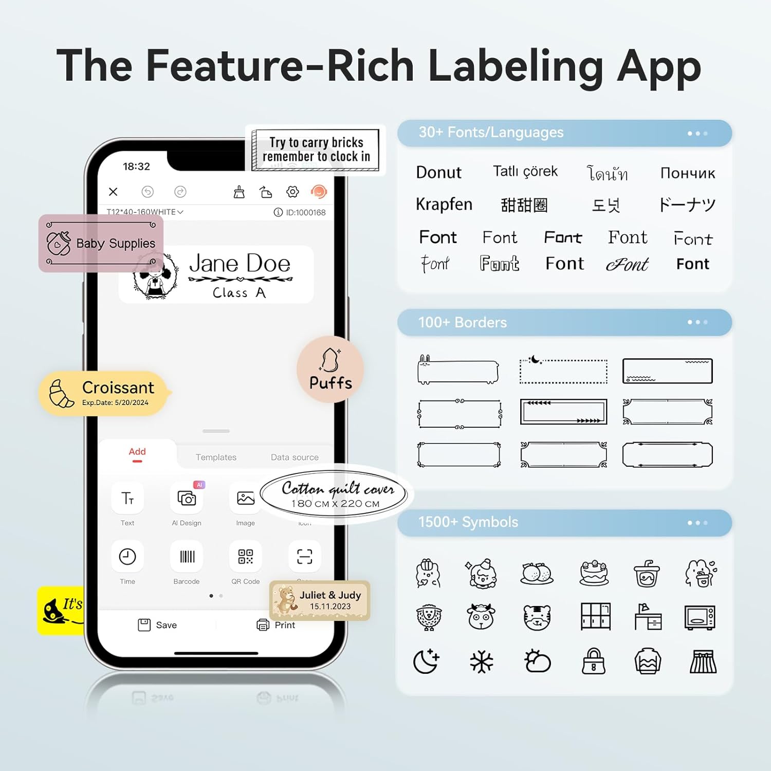 - 【Upgraded Print Quality】Label Makers with BPA-Free Direct Thermal Technology. Equipped with high-speed chips and 203 DPI, you can enjoy high-definition without relying on ink or toner. Built-in durable and recharge battery for long working time, slide into your pocket, easy to carry anywhere.