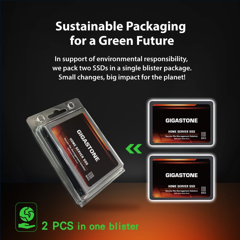 Gigastone Home Server SSD 4TB NAS SSD Drive Cache (2-Pack) 24/7 Durable High Endurance Personal Cloud Data Sync Network Attached Storage RAID 3D NAND 2.5" SATA Internal Solid State Hard Drives