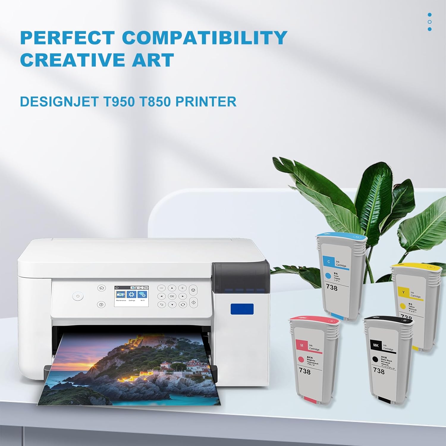 High Capacity 738 738XL Ink Cartridges 498N4A 498N6A 498N5A 498N7A Compatible with T950 T850 Printer Ink(4-Pack)