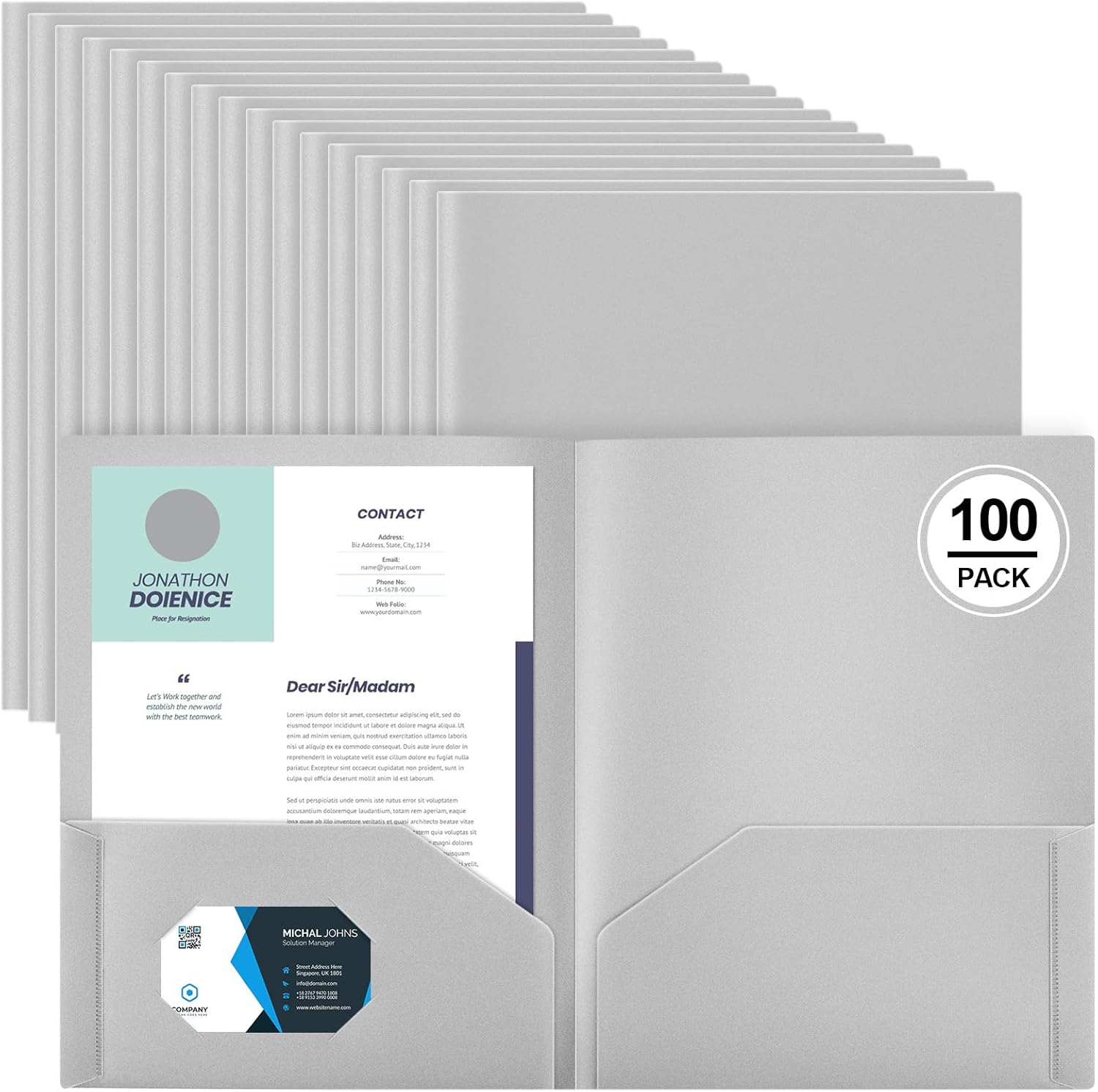 • Package Included: you will receive 100 grey pocket folders, each folder is designed with 2 pockets, suitable for holding 8.5 x 11 inch letter size paper, each pocket can easily and neatly stack 50 letter size pages paper, sufficient quantity to meet your daily use and replacement needs