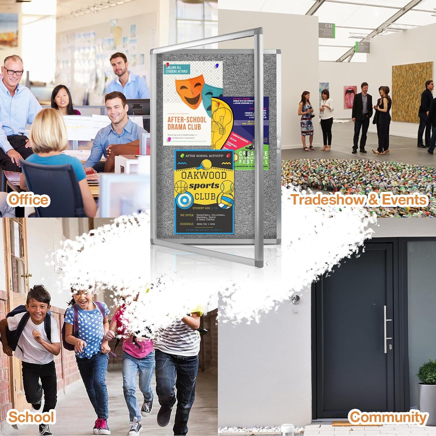- Versatile Utility: From offices to classrooms, kitchens to community centers, our waterproof bulletin board seamlessly adapts to various environments with its versatile design. Illuminate your space with our Enclosed Cork Boards, ideal for displaying announcements, pictures, and more in offices, schools, or commercial settings.