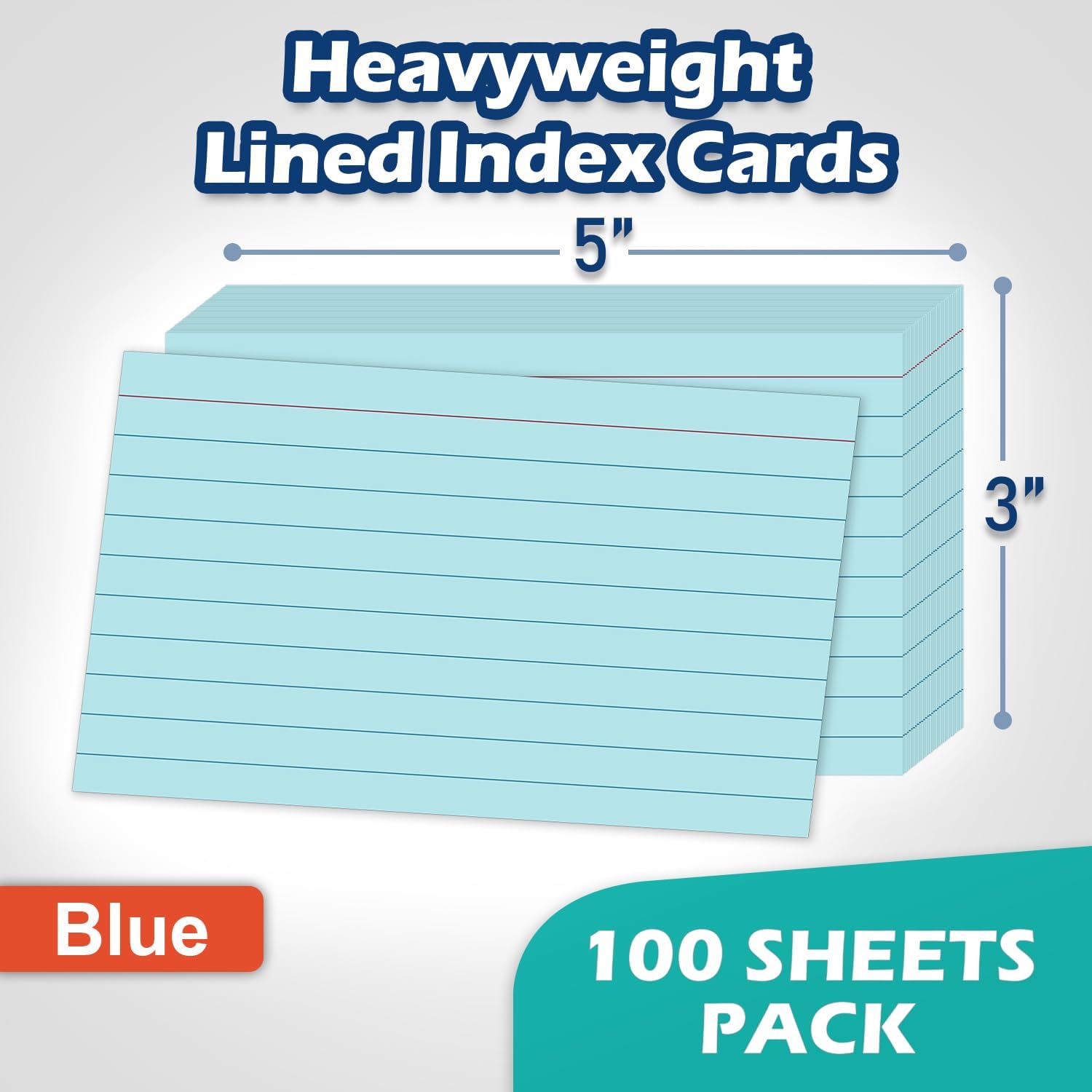 Blue Lined Index Cards 3x5 Ruled Note Cards 100 Count, 180 gsm Heavy Weight