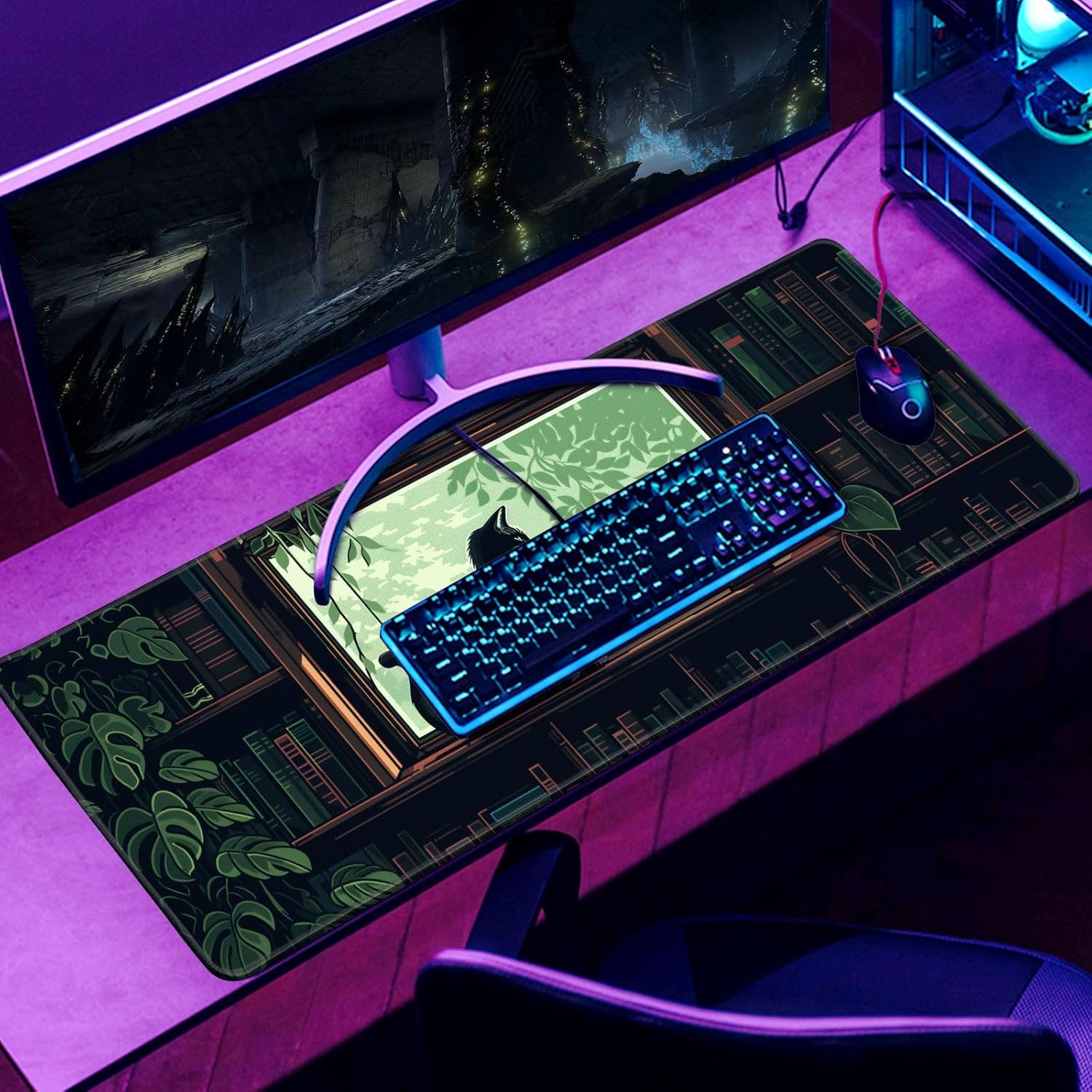 XL Mouse Pad Gaming Kawaii Cute Pixel Cat Outdoor Extra Large Mousepad (31.5x11.8 in), Green Desk Mat Anime Pad Home Office Decor Mouse Pad Stitched Edges Smooth Surface Non-Slip Bottom Mat