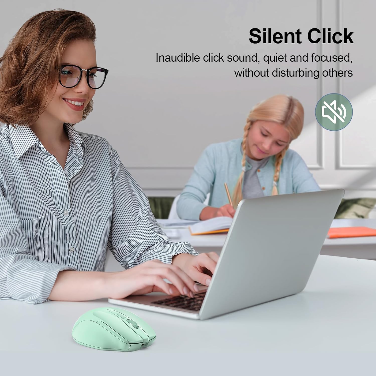 TECKNET Wireless Mouse (BT5.0/3.0 & 2.4G) Rechargeable 4800 DPI Silent USB A & Bluetooth Mouse 6 Buttons, Wide Compatibility - Green