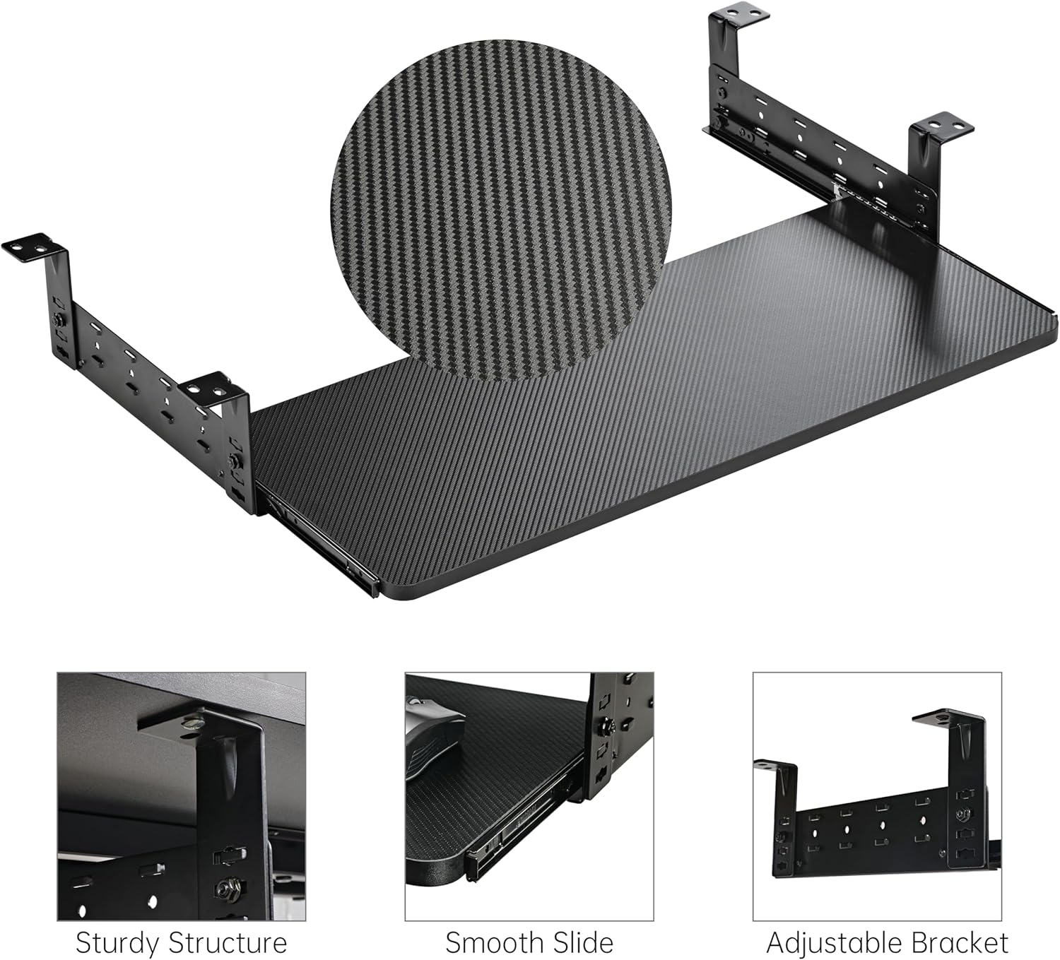 - 【Larger Size for More Comfortable Typing】: This slide out keyboard tray measures 28x11in, and the increased area allows you to place your keyboard, mouse, or other items easily. It also offers space for freedom of movement and type. You can find the perfect ergonomic setup for keyboard mouse tray, providing optimal comfort and support for your wrists and hands while typing.