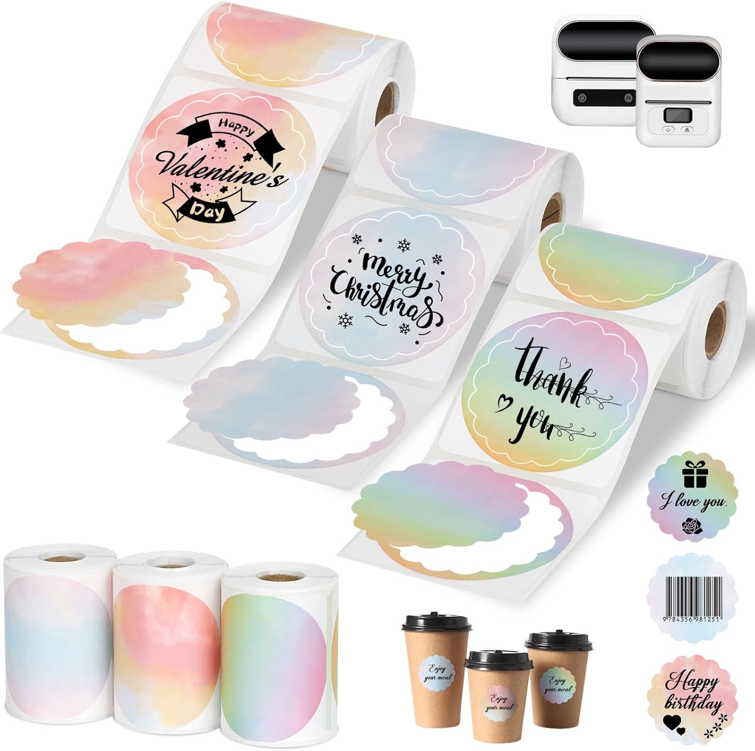 HuiJuKeJi 3 Rolls Thermal Round Label Paper,1.96 "x1.96 Gradient Label Maker Sticker for Phomemo M220/M200/M221/M110 Printer,Multi-Purpose Self-Adhesive Waterproof Labels for Barcode,DIY,Logo,Thanks