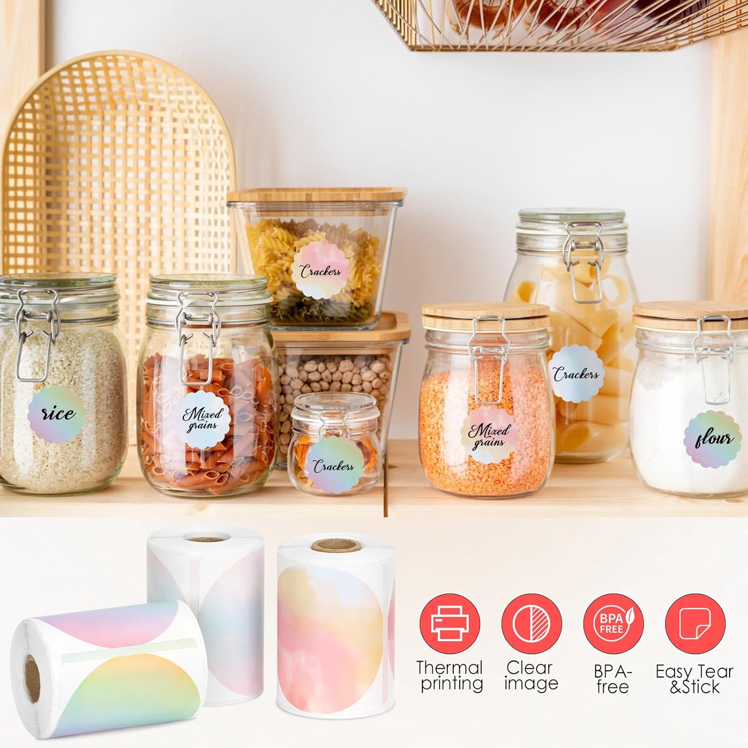 - 3 Rolls of Round Thermal Labels:HuiJuKeJi thermal self-adhesive gradient labels have 3 rolls, each roll color is gradient azure, gradient blue-pink, gradient rainbow, 140 labels/roll, 420 labels in total. Size: 1.96 "x1.96" (50x50mm). You can write or print many different text and patterns of round gradient color labels make your products more unique and eye catching.