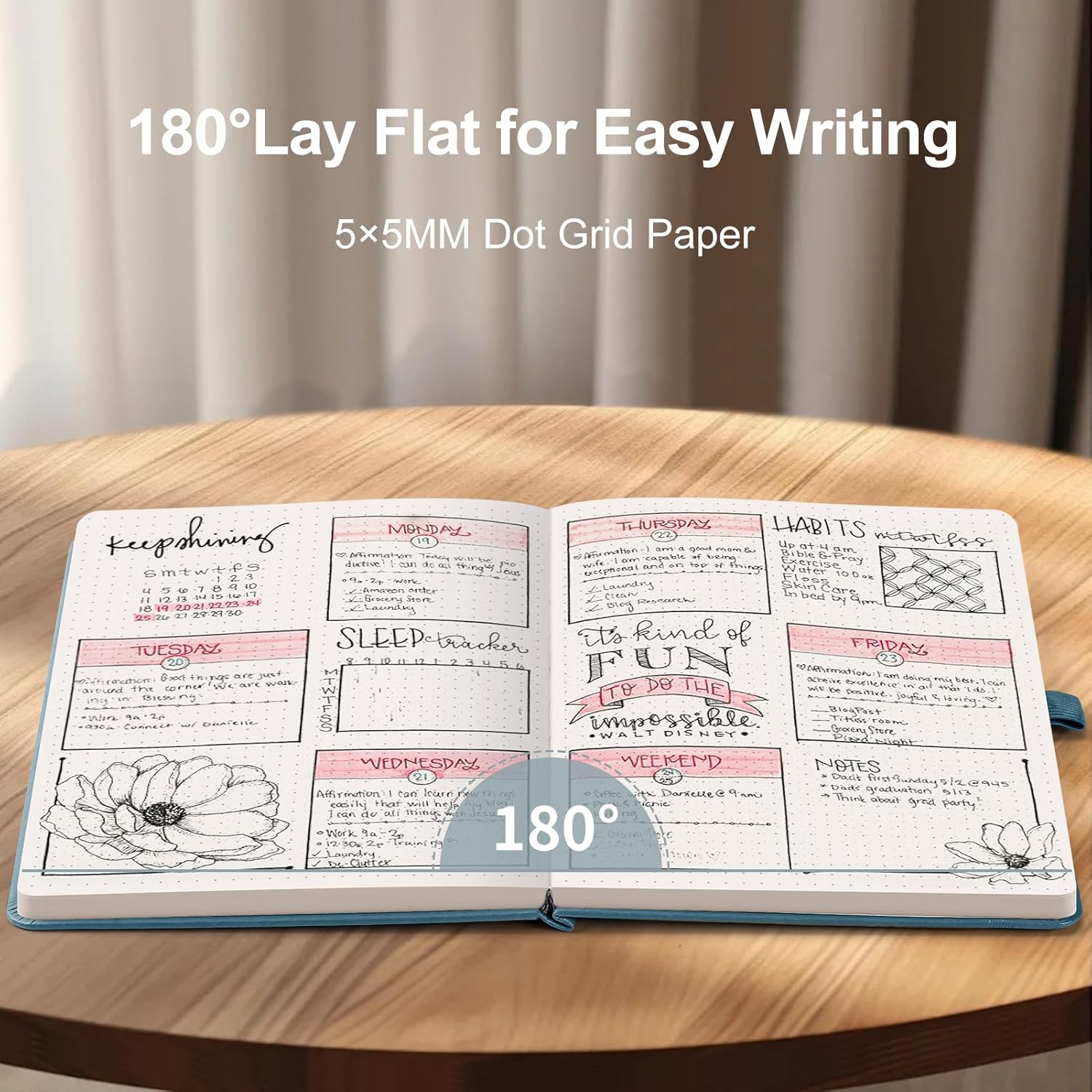 - BULLET DOTTED JOURNAL: This dot grid notebook features 64 sheets/128 pages, providing ample space for writing. The A5 size 5.7" × 8.3" makes it easy to carry. Crafted with a durable and waterproof vegan leather hardcover, it ensures your journal stay protected in any environment