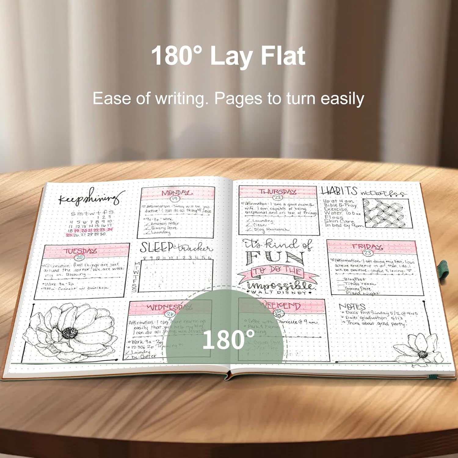 - LAY FLAT DESIGN FOR WRITING: The thread-bound design allows this notebook to 180° lay flat, ensuring easy writing and reading for both right and left-handed users without awkward hand positions. This provides an ideal ergonomic writing experience
