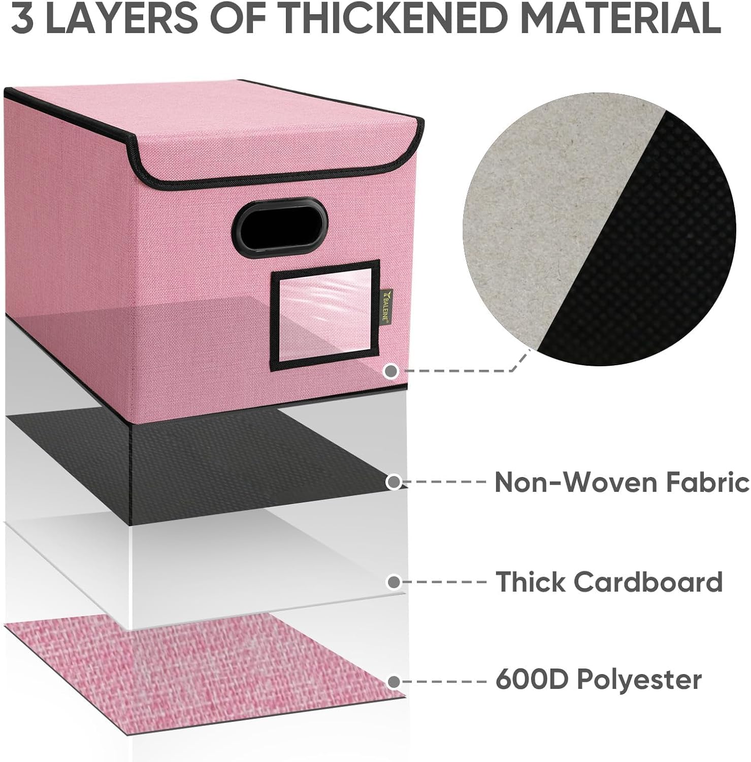 - [DURABLE MATERIAL] The outer layer of our filing box is crafted from high-quality polyester fabric and reinforced with thick cardboard in the middle. This construction ensures that the box maintains its shape and provides better bearing capacity for important documents and files. Its textured appearance can also serve as a stylish decorative element in any office or home.