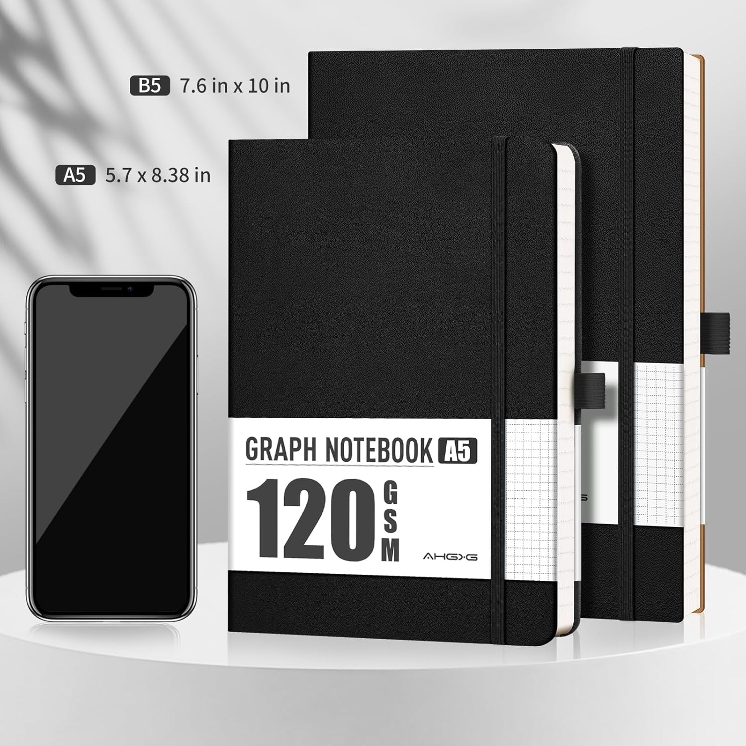 - GRAPH PAPER NOTEBOOK: AHGXG graph paper notebook features 48 sheets/96 pages, Large B5 size 7.6" × 10", providing ample space for writing. Crafted with a durable and waterproof vegan leather hardcover, it ensures your journal stay protected in any environment