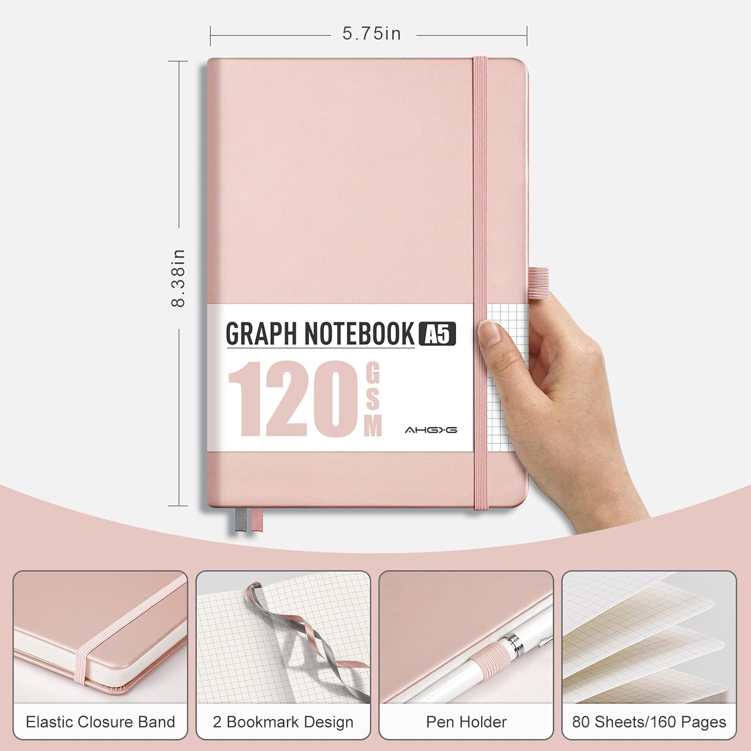 - GRAPH PAPER NOTEBOOK: AHGXG graph paper notebook features 80 sheets/160 pages, providing ample space for writing. The A5 size 5.7" × 8.3" makes it easy to carry. Crafted with a durable and waterproof vegan leather hardcover, it ensures your journal stay protected in any environment