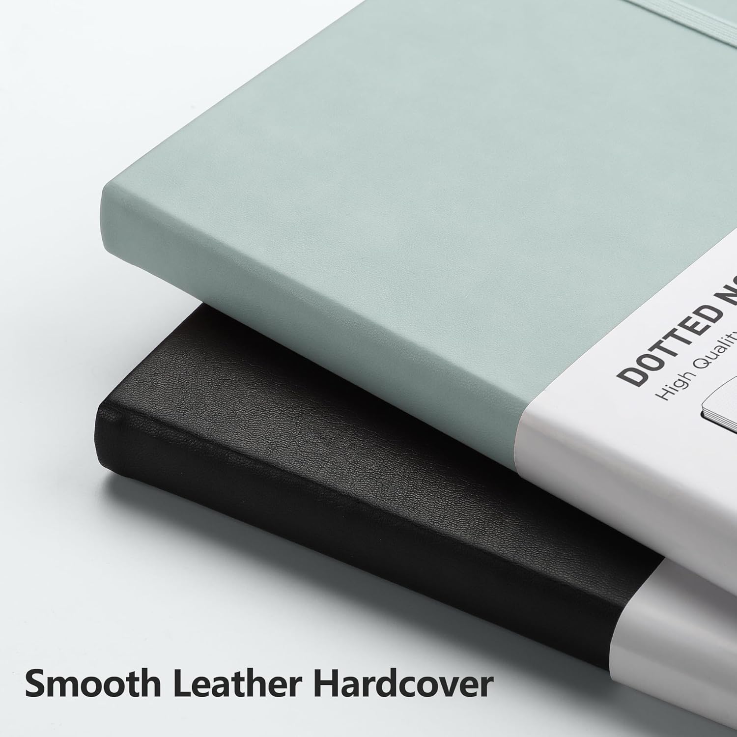 - PREMIUM PAPER: Crafted with time-resistant 100 GSM paper, this dotted journal preserves thoughts flawlessly while resisting ghosting/bleed-through with most pens. Acid-free material ensures long-term preservation, and its smooth surface enhances writing clarity - blending durability and premium performance