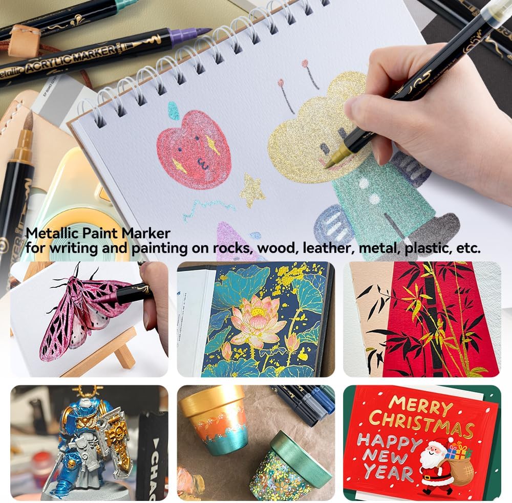 - Versatile metallic acrylic paint pen set - These metallic acrylic paint pens are suitable for wide range of surfaces like: rock, canvas, paper, leather, plastic, etc. Making it perfect for unleashing your creativity and exploring new artistic possibilities. To ensure the longevity of our acrylic markers, it's important to store them properly when not in use. Best store them horizontally.