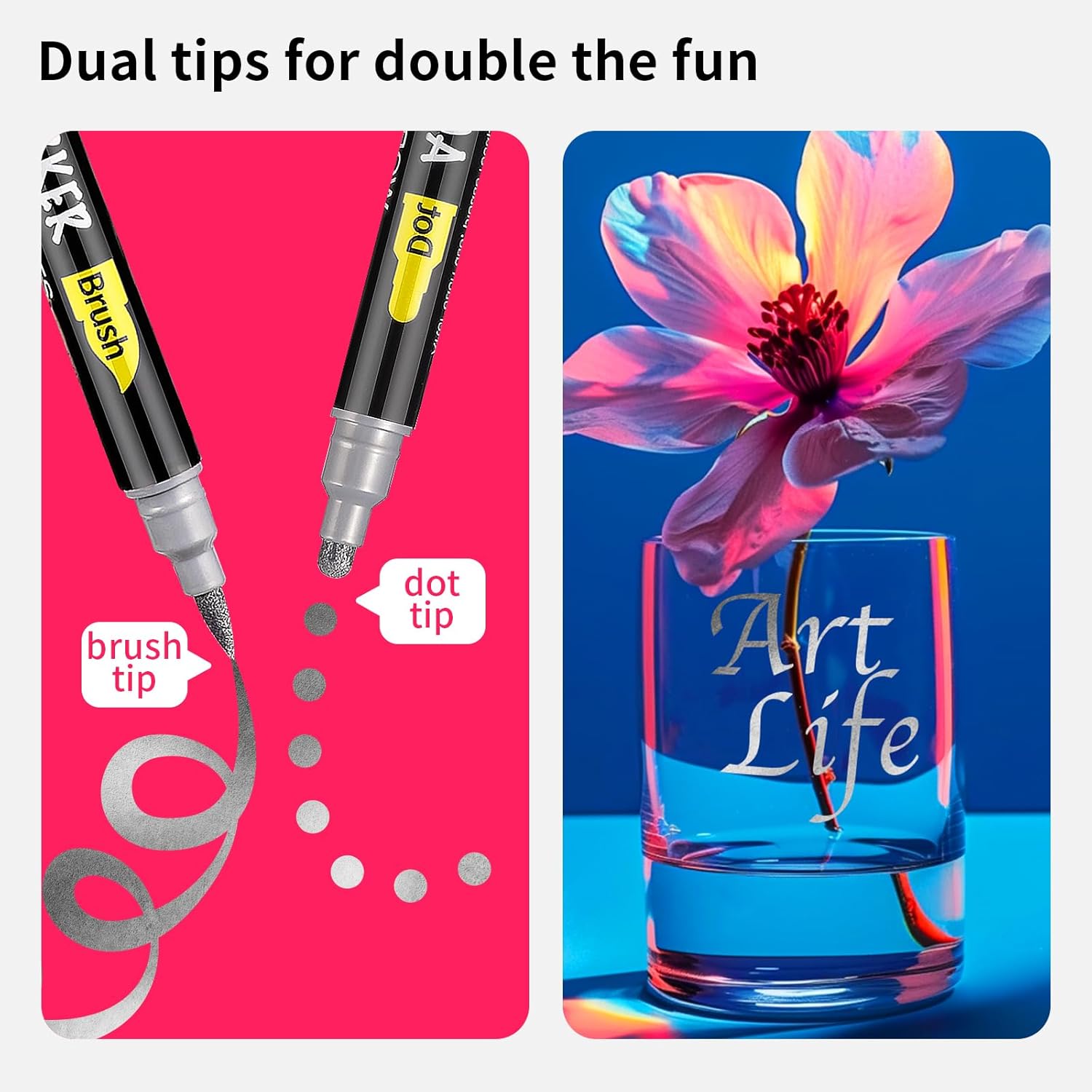 - DUAL TIP: Our rock painting pens come with a dot tip and a 0.5-6 mm brush tip. Designed to give you the flexibility to switch effortlessly between fine lines and bold strokes, these paint pens acrylic markers expand your creative horizons and enhance the intricate details in your work.