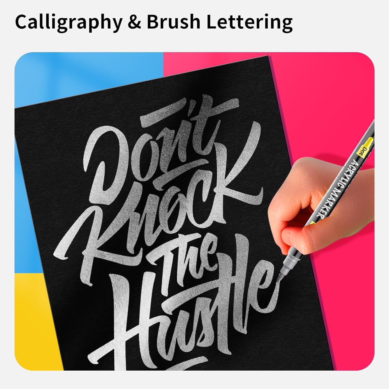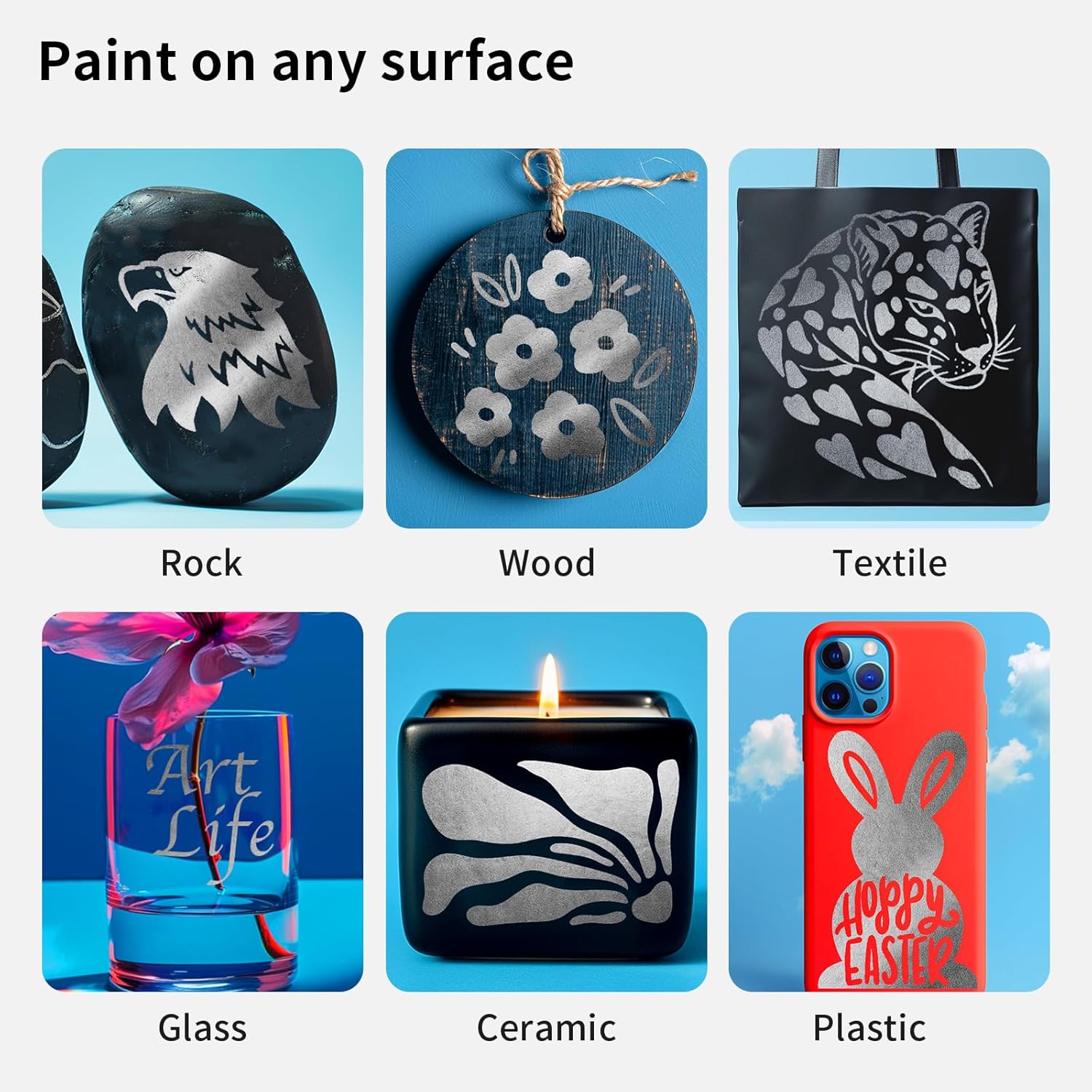- PREMIUM QUALITY: This silver-pack of paint pens features high-quality acrylic paint and a durable nib that dries opaque, so you donβt have to make a second layer! The silver permanent paint marker is acid-free, waterproof and wear resistant. Itβs a great tool for art projects, DIY crafts, coloring, greeting cards, poster making, painting, highlighting.