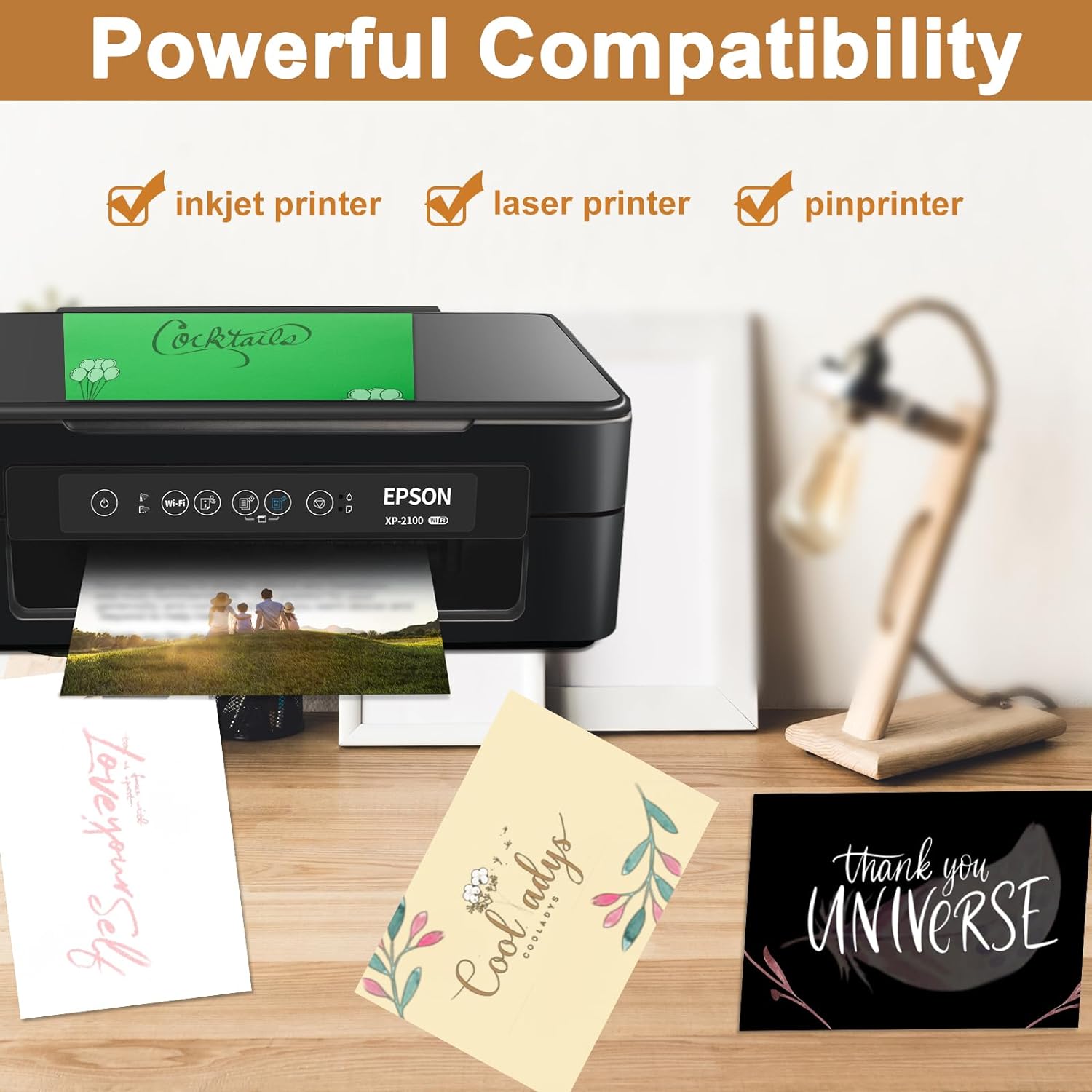 - ▶COMPATIBILITY: Sturdy and versatile, our thick card stock paper is compatible with most types of inkjet, laser printers, die cut machine and cricut cutting machine. Consult your printer manual to ensure it can print on 75lb Cover / 200gsm before ordering