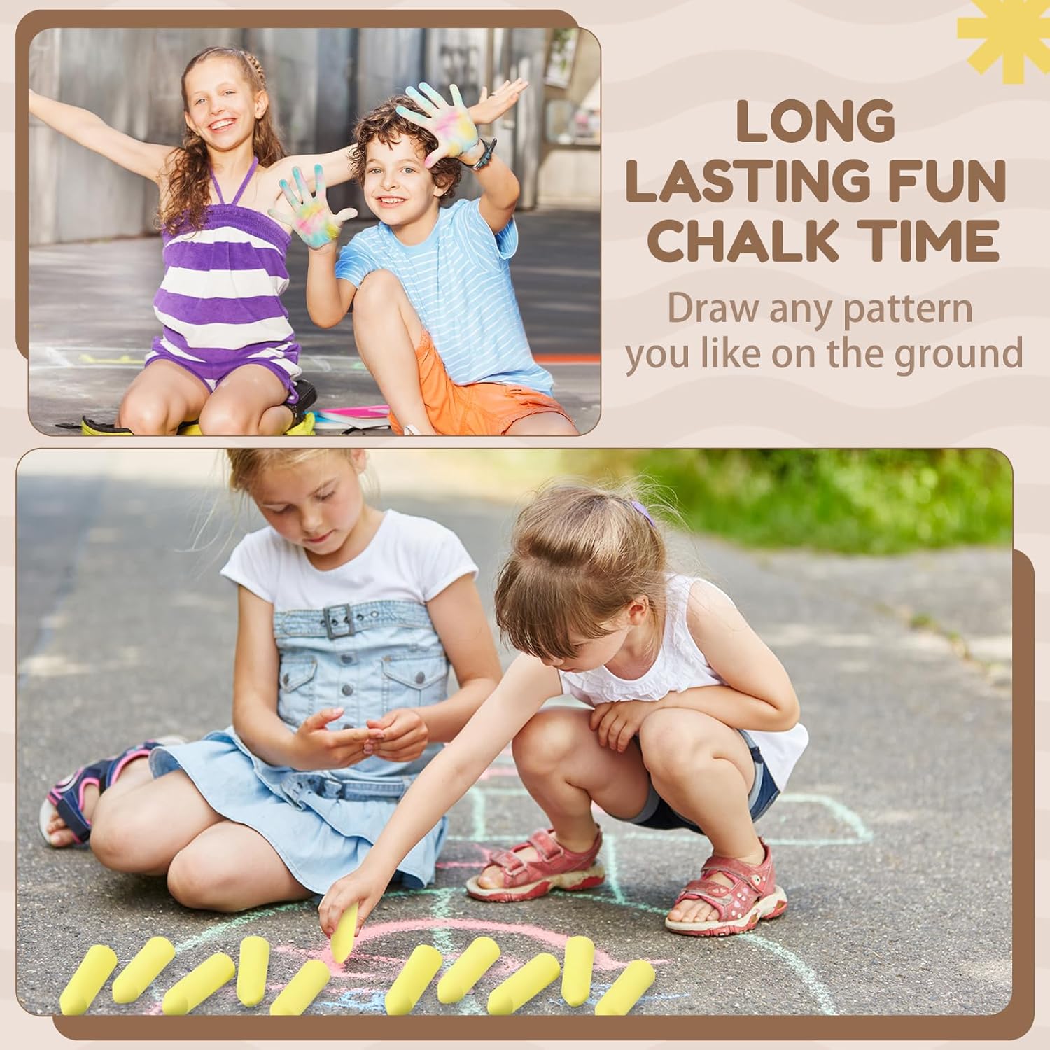Fulmoon 40 Pcs Jumbo Sidewalk Chalk for Kids Outdoor Art Non Toxic Large Washable Street Chalk for Adults Drawing Painting Classroom(Yellow,Sharp Style)