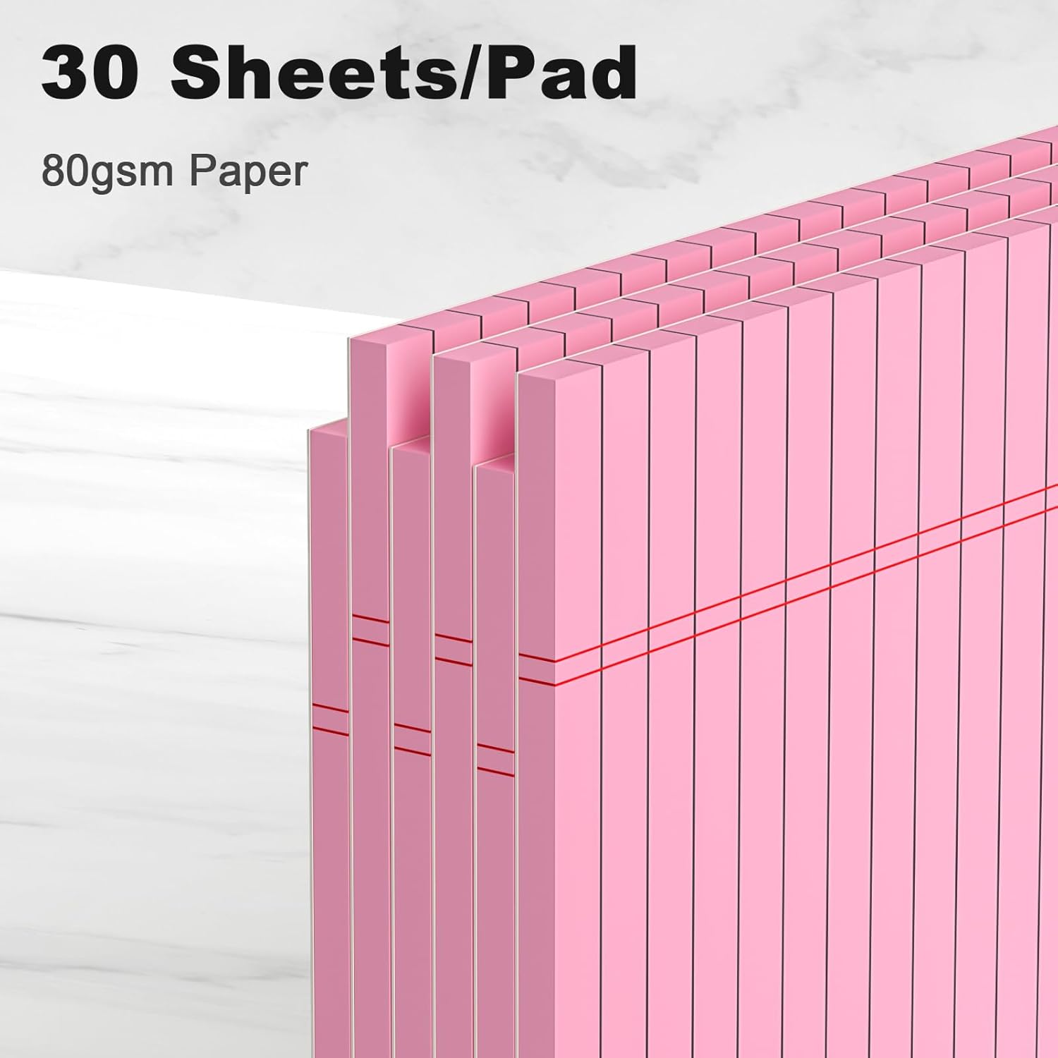 - Pink colored Legal Pads 8.5 x 11 Inch are perfect for students, teachers, and professionals. Made with premium 80gsm thick paper, these notepads provide a luxurious writing experience. The colored paper resists ink bleeding, while the black lines and double red margin lines offer ample space for your notes.