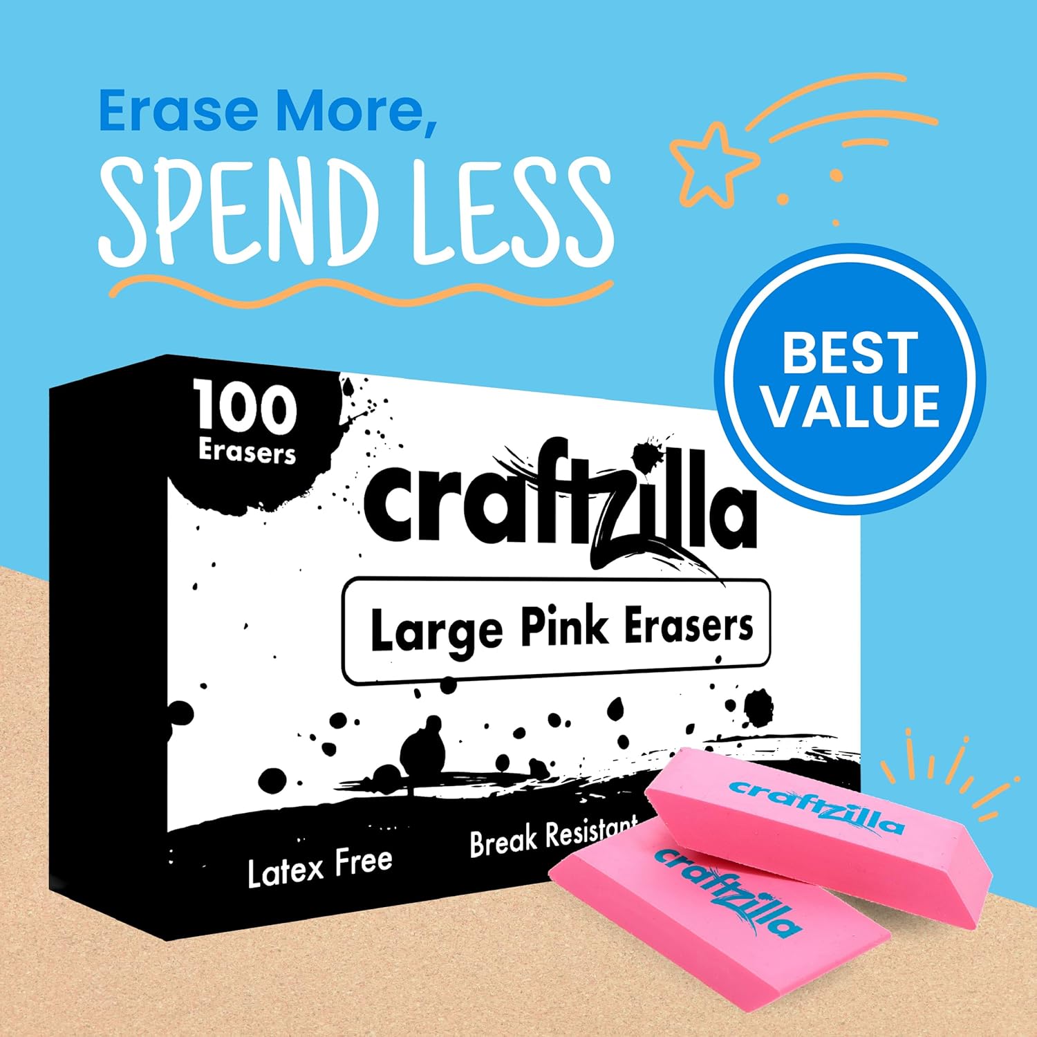 - Efficient and Clean Erasing: These erasers for pencils remove marks effortlessly, leaving no residue or smudges. They ensure clean and precise corrections for students, artists, and professionals, making them great for drawing and writing. Big pink erasers bulk