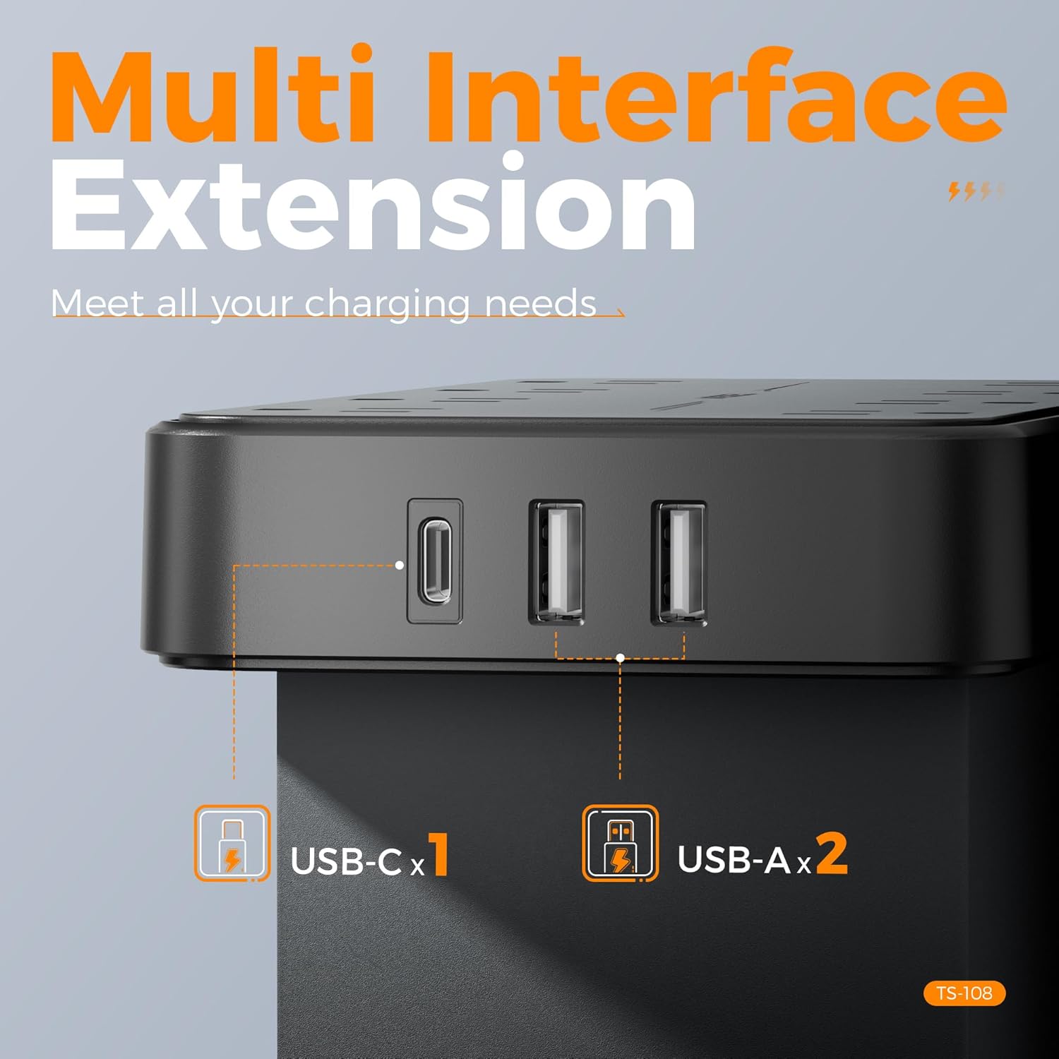 - USB Power Strip : Dual USB A ports features 2.4A, the USB C port features 3A; 2 kinds of USB ports can detect charged devices and deliver optimal charging speed, giving you more charging options; suitable for USB devices like cell phone, tablet, earphone, etc