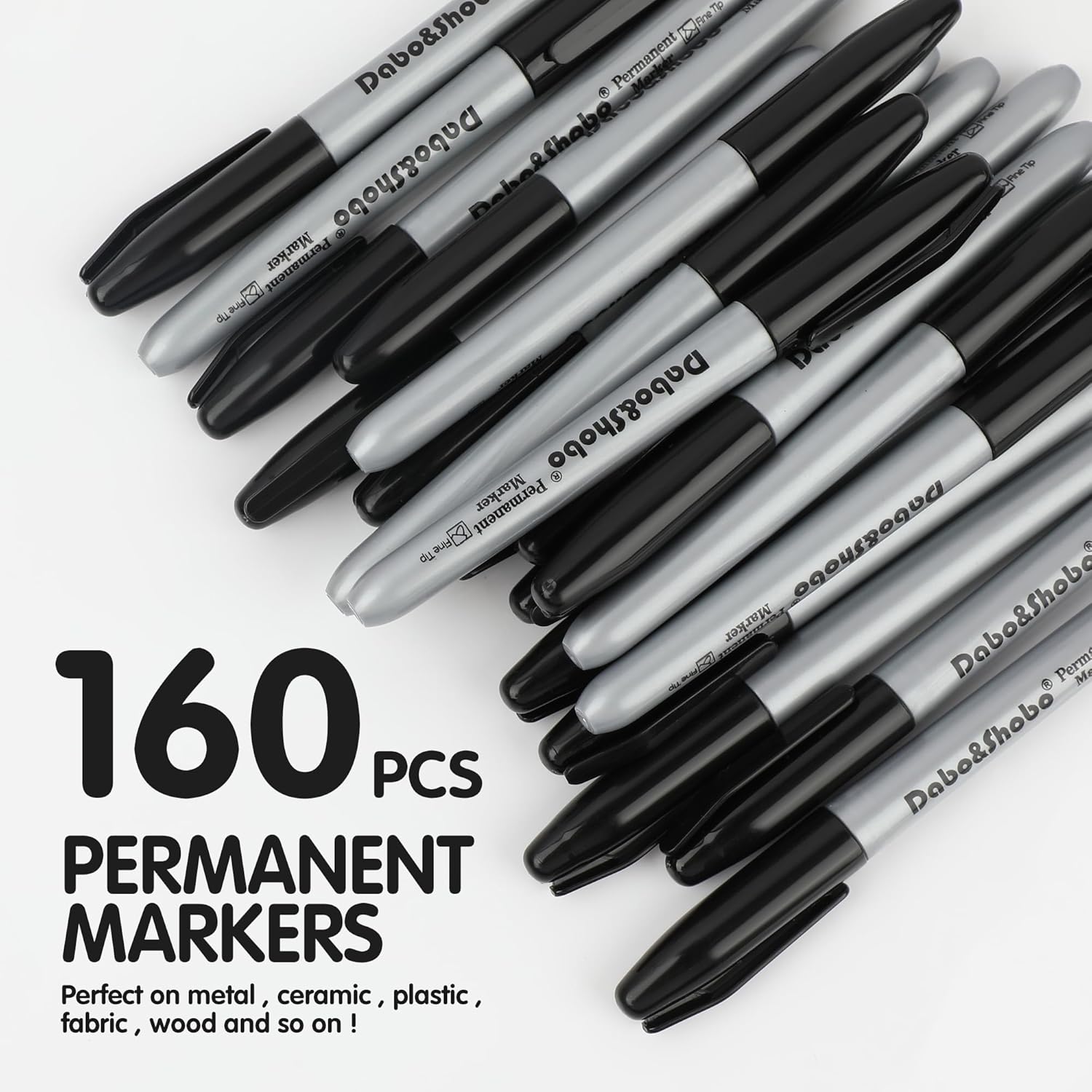 Dabo&Shobo Permanent Markers, 160 Pack Black Permanent Markers Bulk, Fine Tip, Quick Drying, Waterproof Markers, Work On Wood, Metal, Plastic, Stone, Glass For Office School Home