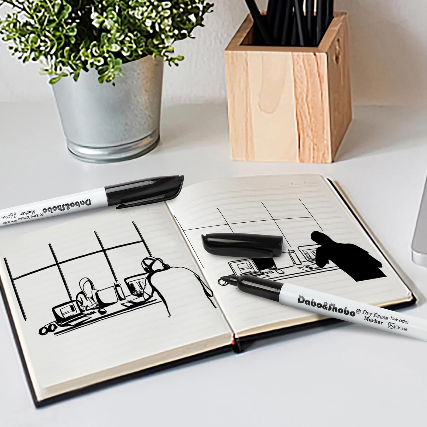 Dabo&Shobo Dry Erase Markers Bulk, 120 Count Black Whiteboard Markers, Low Odor Dry Erase Markers, Chisel Tip, Suitable for School, Office, or Home