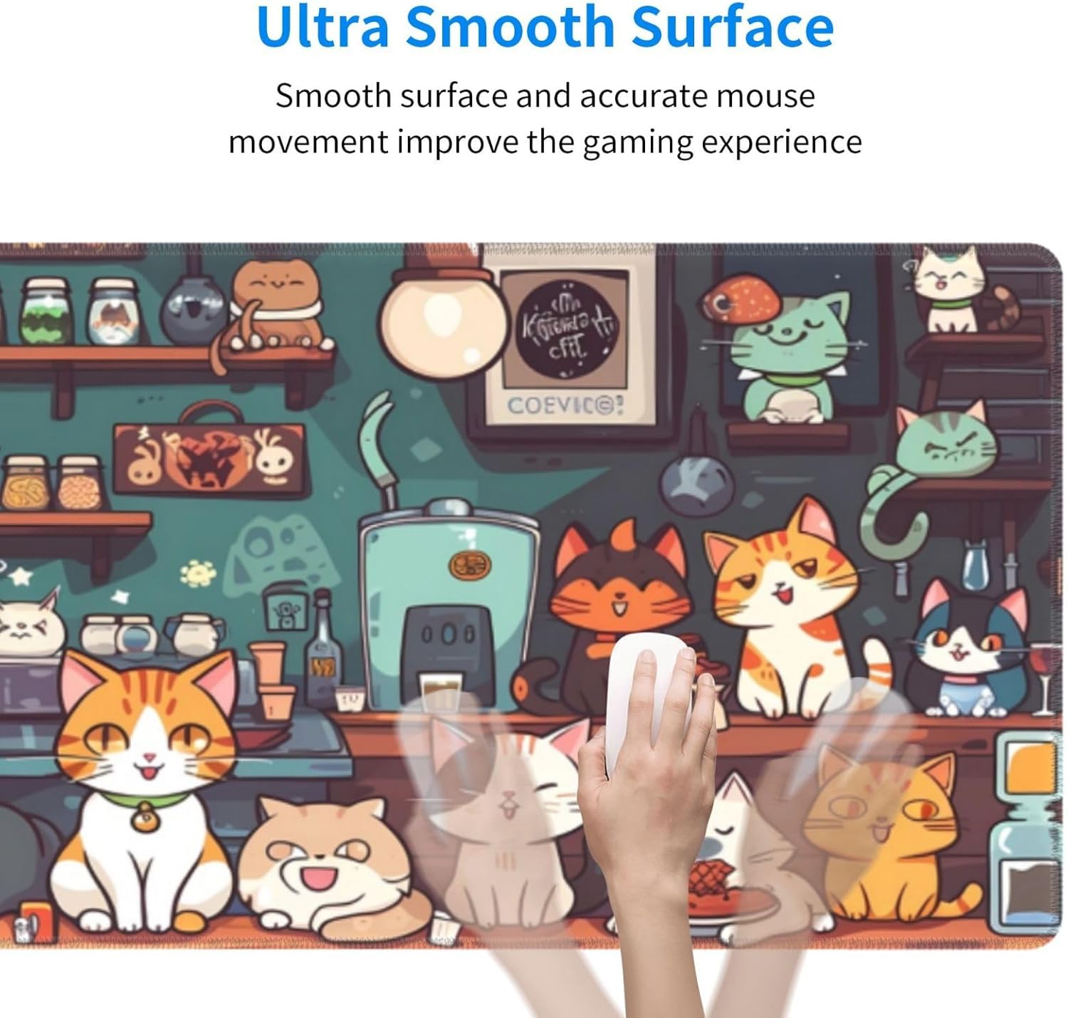 Gaming Mouse Pad Desk Pad,Extended Big Mouse Pad,31.5x11.8 Inch Long Computer Keyboard Mouse Mat Mousepad with 3mm Non-Slip Base and Stitched Edge for Gaming and Office⦠(cat)