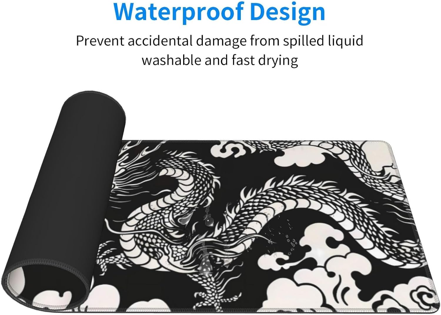 Gaming Mouse Pad Desk Pad,Extended Big Mouse Pad,31.5x11.8 Inch Long Computer Keyboard Mouse Mat Mousepad with 3mm Non-Slip Base and Stitched Edge for Gaming and Office⦠(Loong)