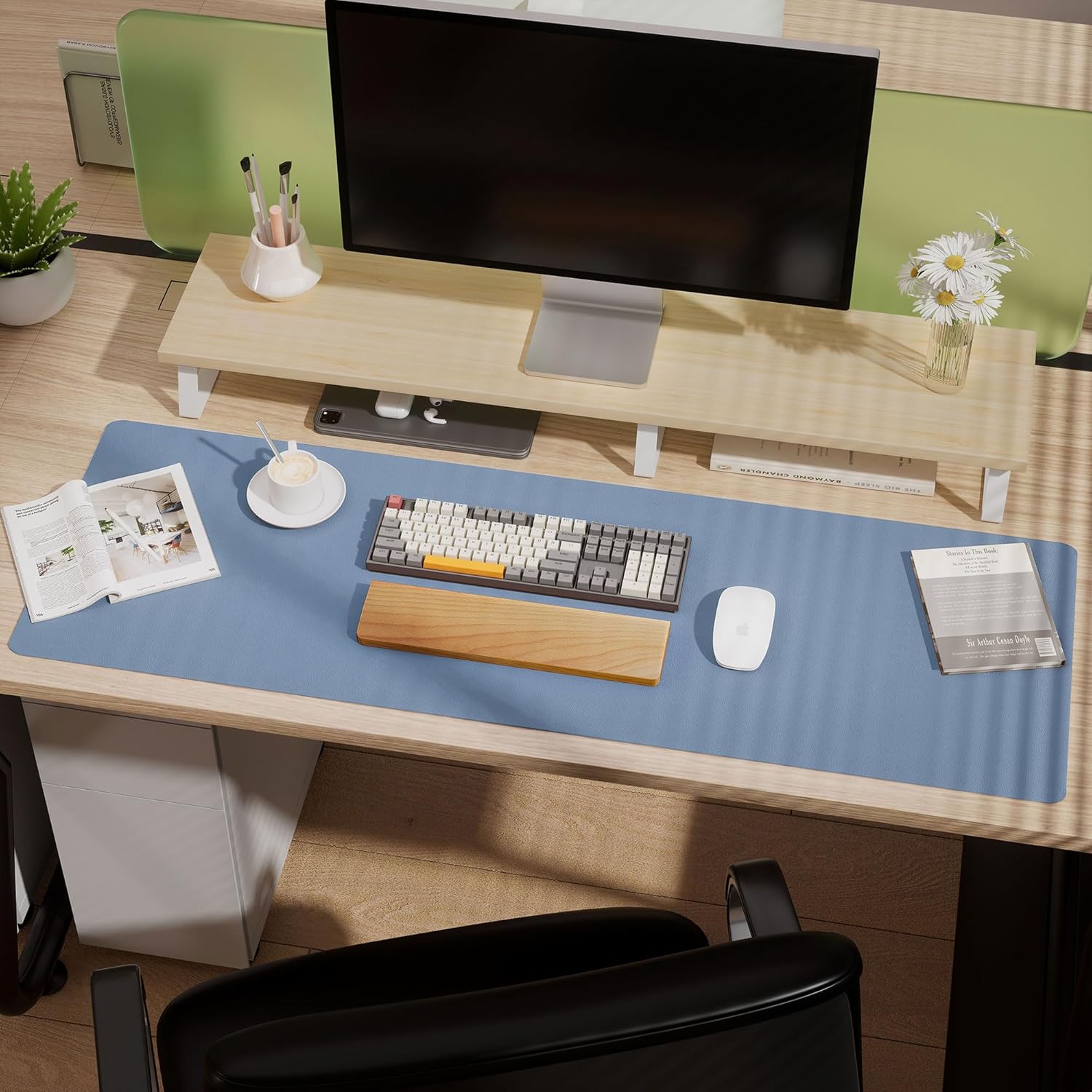 - Large Mouse Pad: Upgrade your workspace with our large desk pad, eliminating the need for an extra mouse pad. Transform your desk into a spacious and professional environment. The back side features a special suede design, significantly enhancing friction resistance with the desktop to prevent slipping. Experience a 70% increase in friction resistance compared to double-sided leather, ensuring a stable and secure workspace.