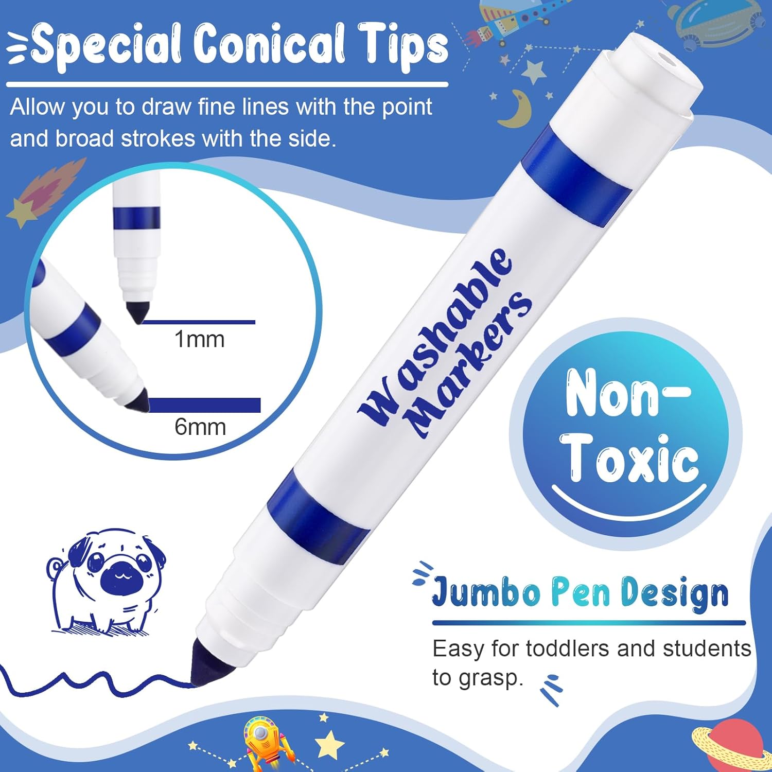 - Rich Quantity: you will receive 60 pieces washable markers bulk, enough quantity to use, replace and share; you can also give the washable markers as birthday gifts to children; Warm reminder: after children use washable markers, remind broad line markers to close the lid, to prevent the ink from drying out