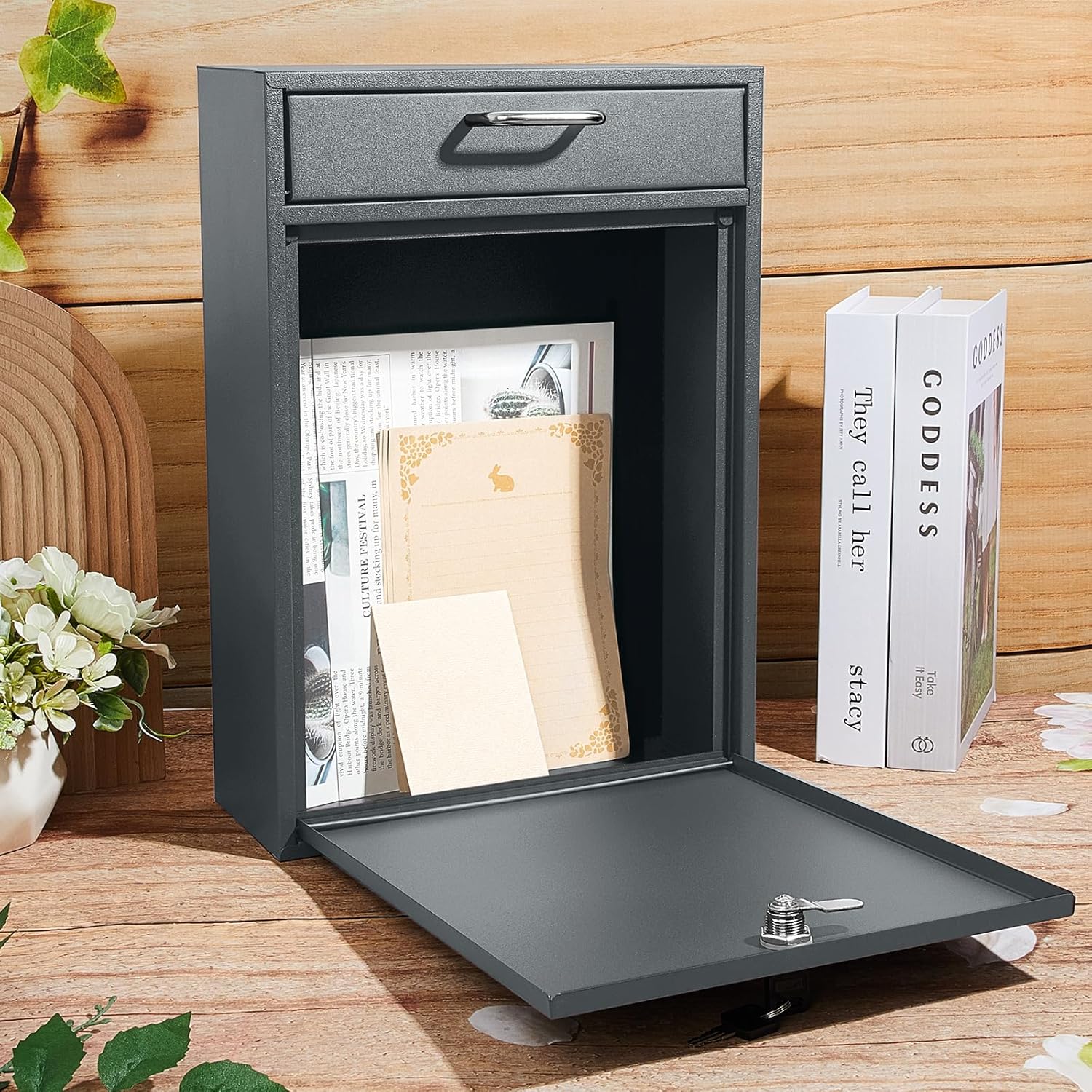 - Quality Material: crafted from quality metal material, this robust drop box promises durability; The wall mount mailbox is coated with dark gray plating which prevents peeling off paint and rust, extending the product's service life