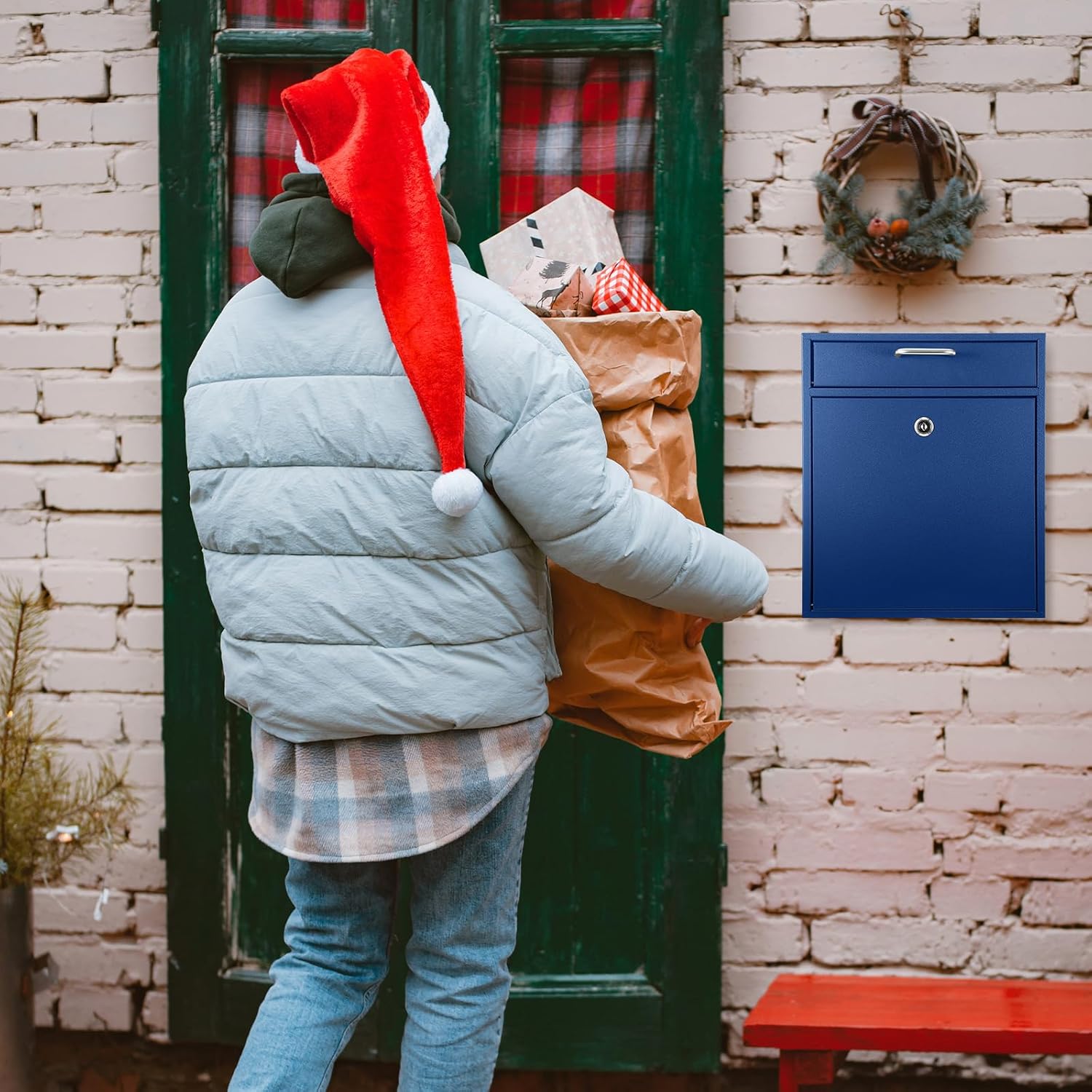 Locking Mailbox with Key for Outdoor 12 x 10.5 x 4.7 Inches Large Wall Mount Mail Box with Lock Security Mail Drop Metal Collection Boxes Hanging Secure Postbox(Dark Blue)
