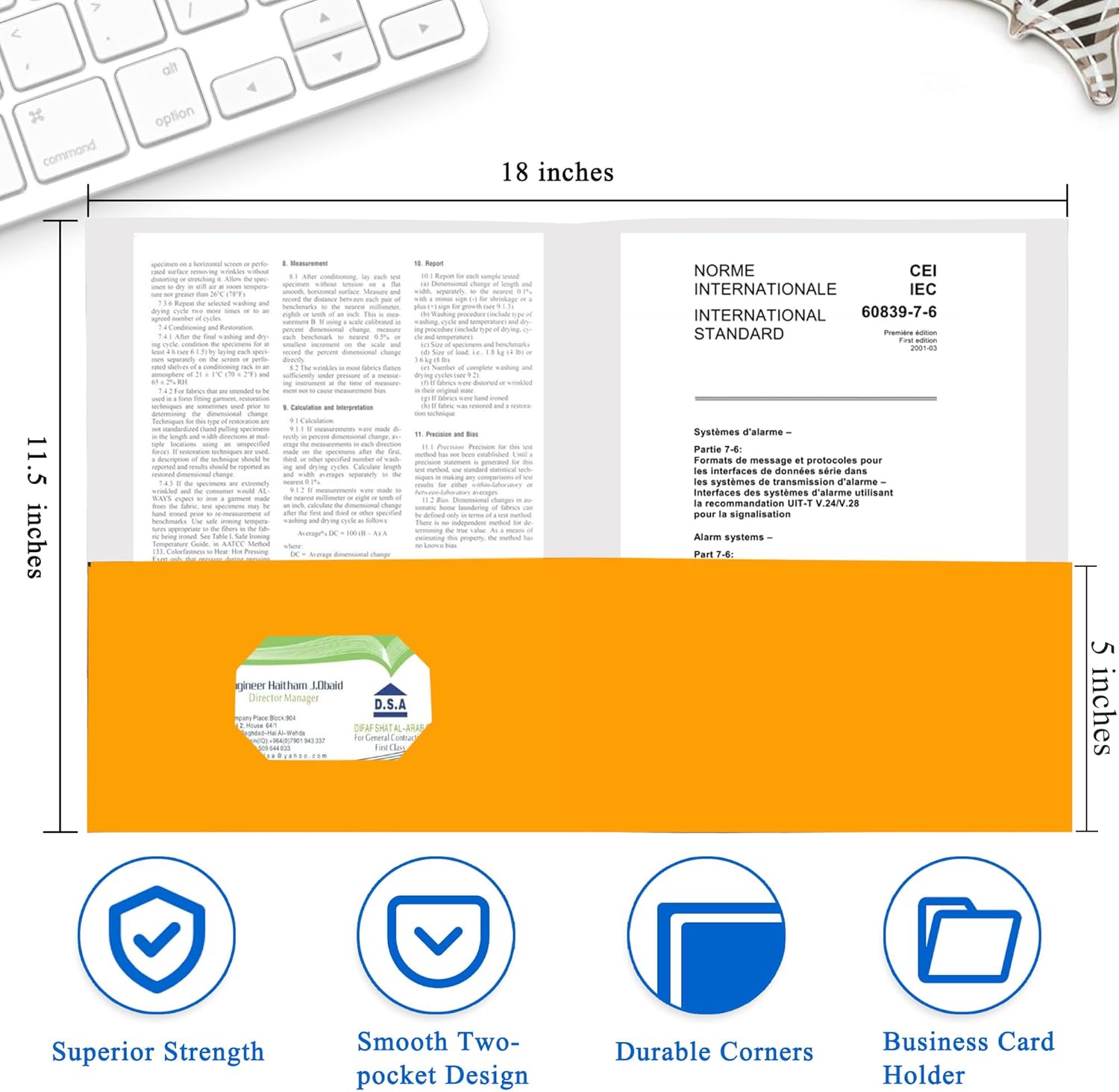 - Professional Design:Two pockets provide storage space for paper,brochures,and more,Each folders for documents measures 9" x 11.5",with two 5" pockets,holds (over 100) sheets of paper,and has a universal business card holder on the right pocket.